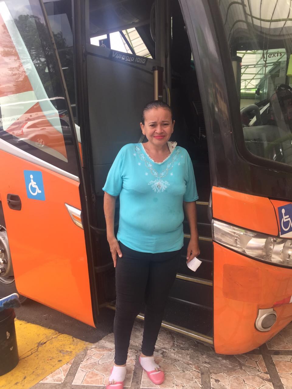 La mujer abordó el bus de las 2 de la tarde en la estación de Caribeños, en barrio Tournón y llegará a Limón entre 5 y 6 de la tarde.