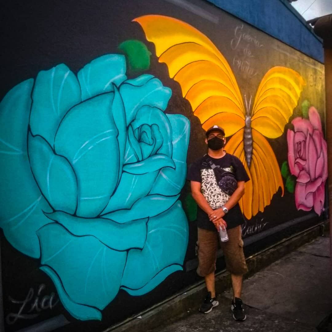 El mural diseñado por Calderón es de tres metros de alto por 4,5 metros de ancho, donde plasmó dos rosas enormes y una mariposa.