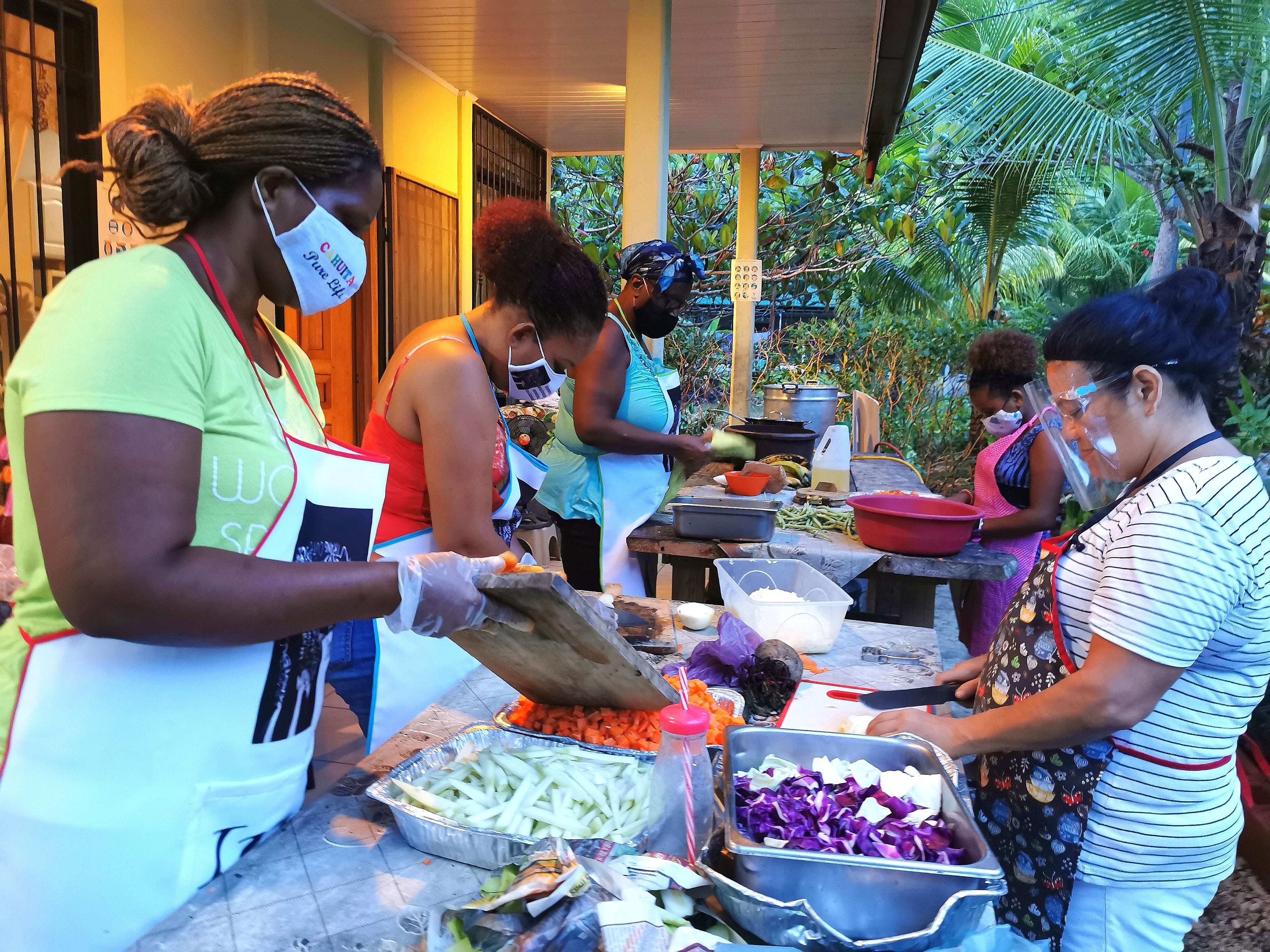 Llamaron la iniciativa Cahuita Community Kitchen. Es una cocina comunitaria que nació cuando empezábamos a padecer el coronavirus y que aún se mantiene en funcionamiento y se renueva.
