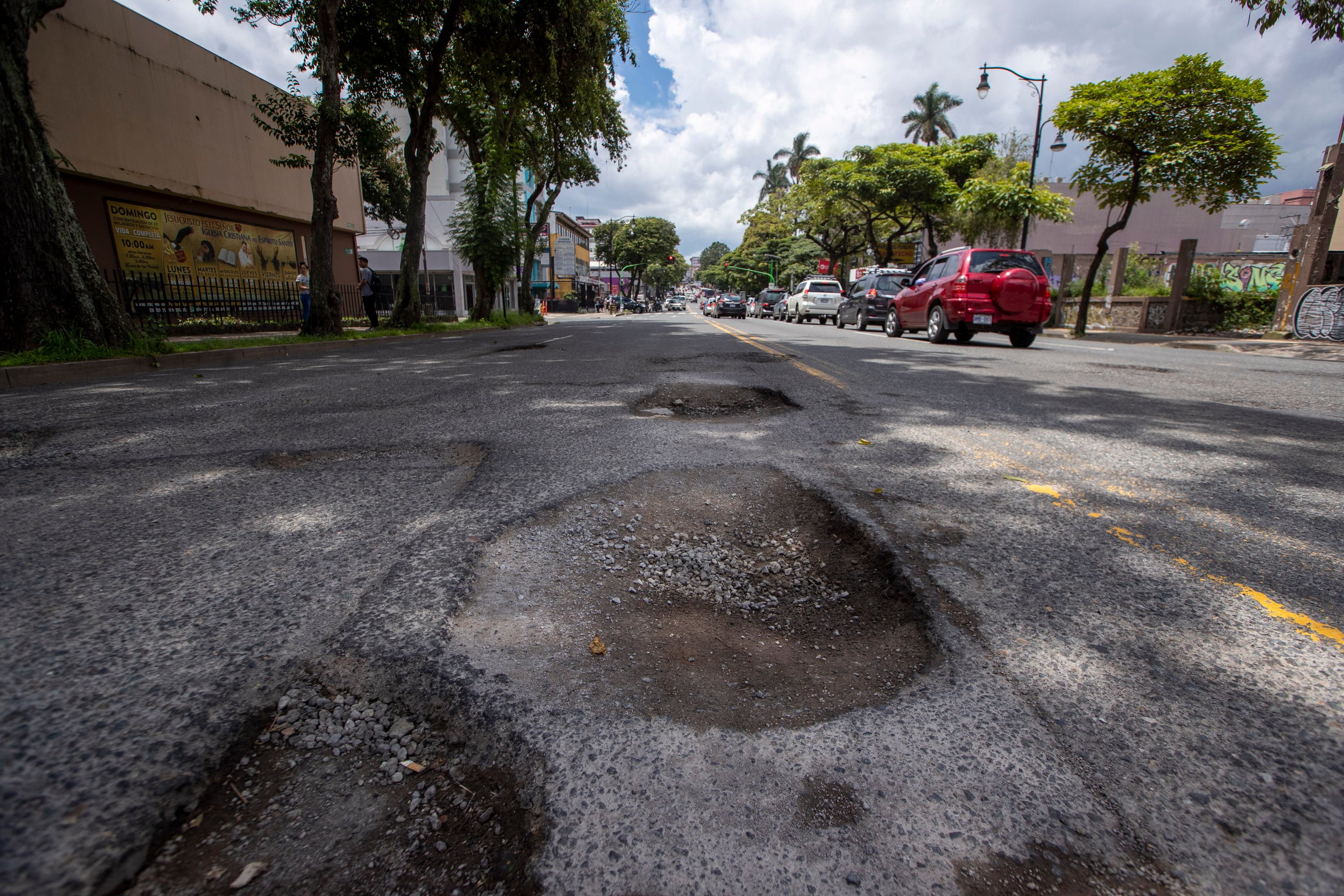 Unos más grandes y profundos que otros, pero prácticamente no hay ninguna que se salve. Así lo comprobamos en un recorrido por Tacacorí de Alajuela, Escazú, Pavas, Barrio México, Cartago, La Sabana, Belén, Circunvalación y San Rafael Abajo de Desamparados, entre otros lugares.