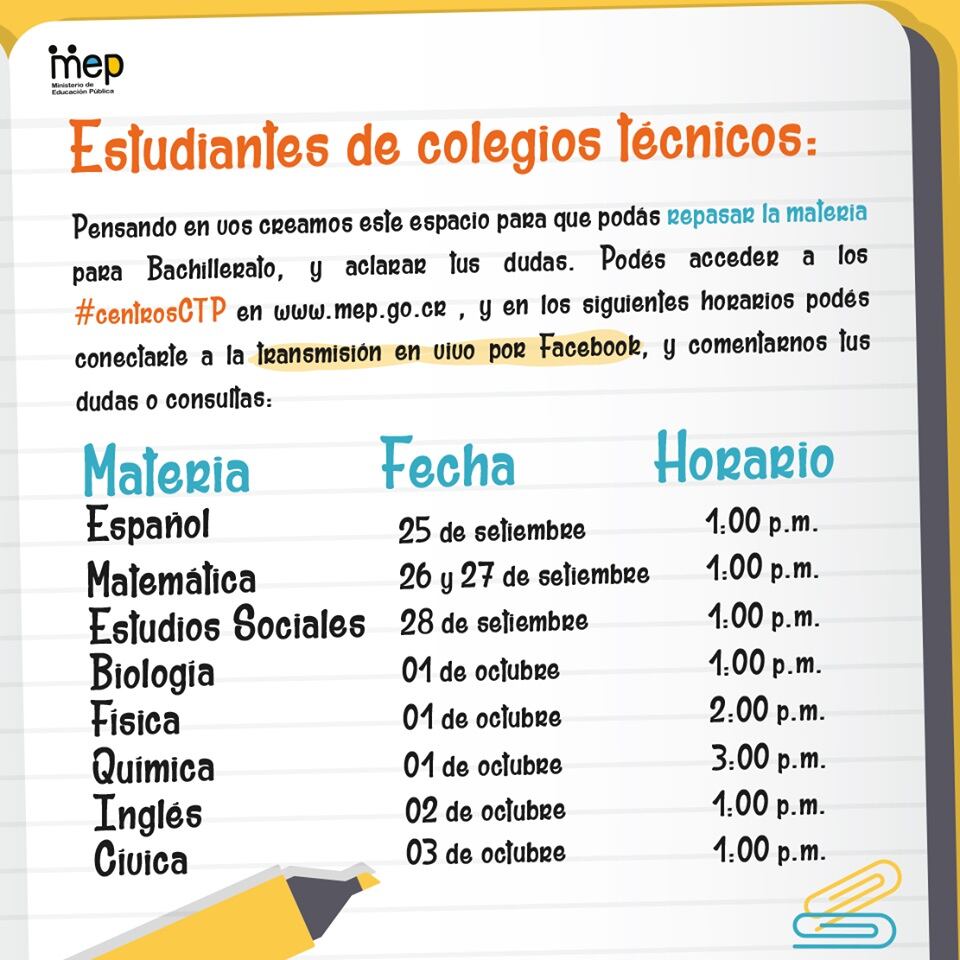 Como muchos de los profesores se sumaron a la huelga y los estudiantes no han podido asistir a los centros a evacuar sus dudas, el MEP habilitó sesiones de estudio por Facebok Live para que los estudiantes puedan aprovechar las capacitaciones en la recta final.