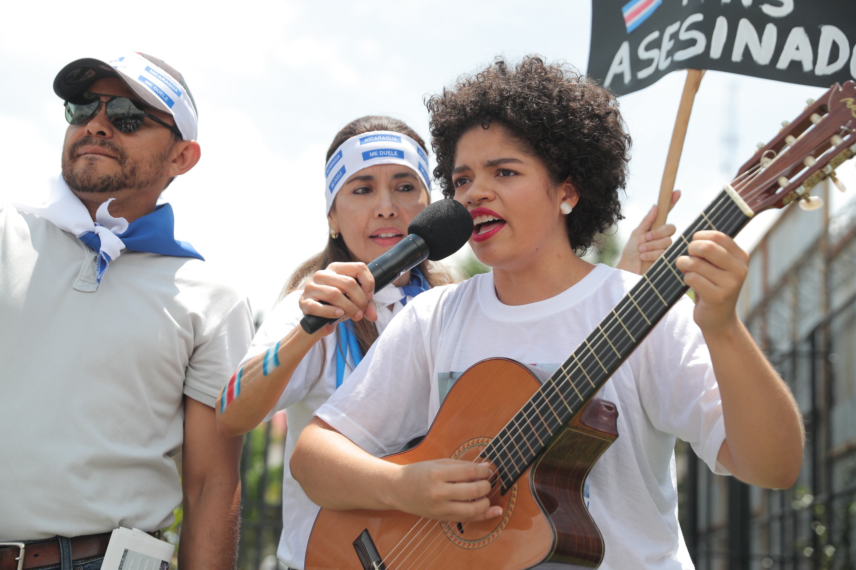 Sí estuvo en un par de protestas entre 2018 y 2019 aquí en Costa Rica, de hecho hasta cantó en el barrio La California, frente a la embajada de Nicaragua, el que ya es un himno nicaragüense: “Nicaragua, Nicaragüita” de su coterráneo Carlos Mejía Godoy con su grupo, Los de Palacagüina.