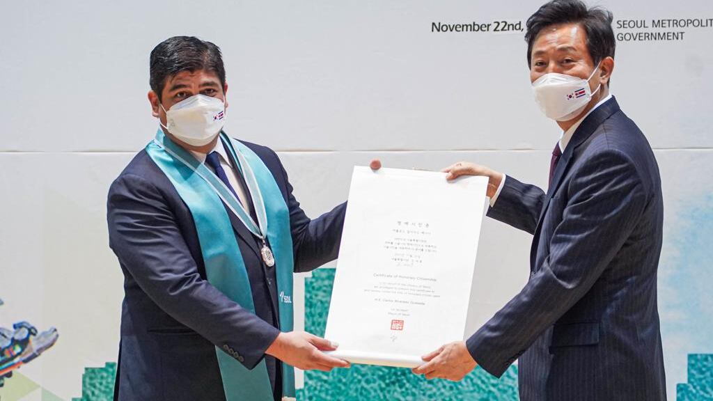 El alcalde de la ciudad de Seúl, Oh-See Hoon, le hizo entrega de la ciudadanía de honor al presidente Carlos Alvarado, quien se encuentra de visita oficial en Corea del Sur.