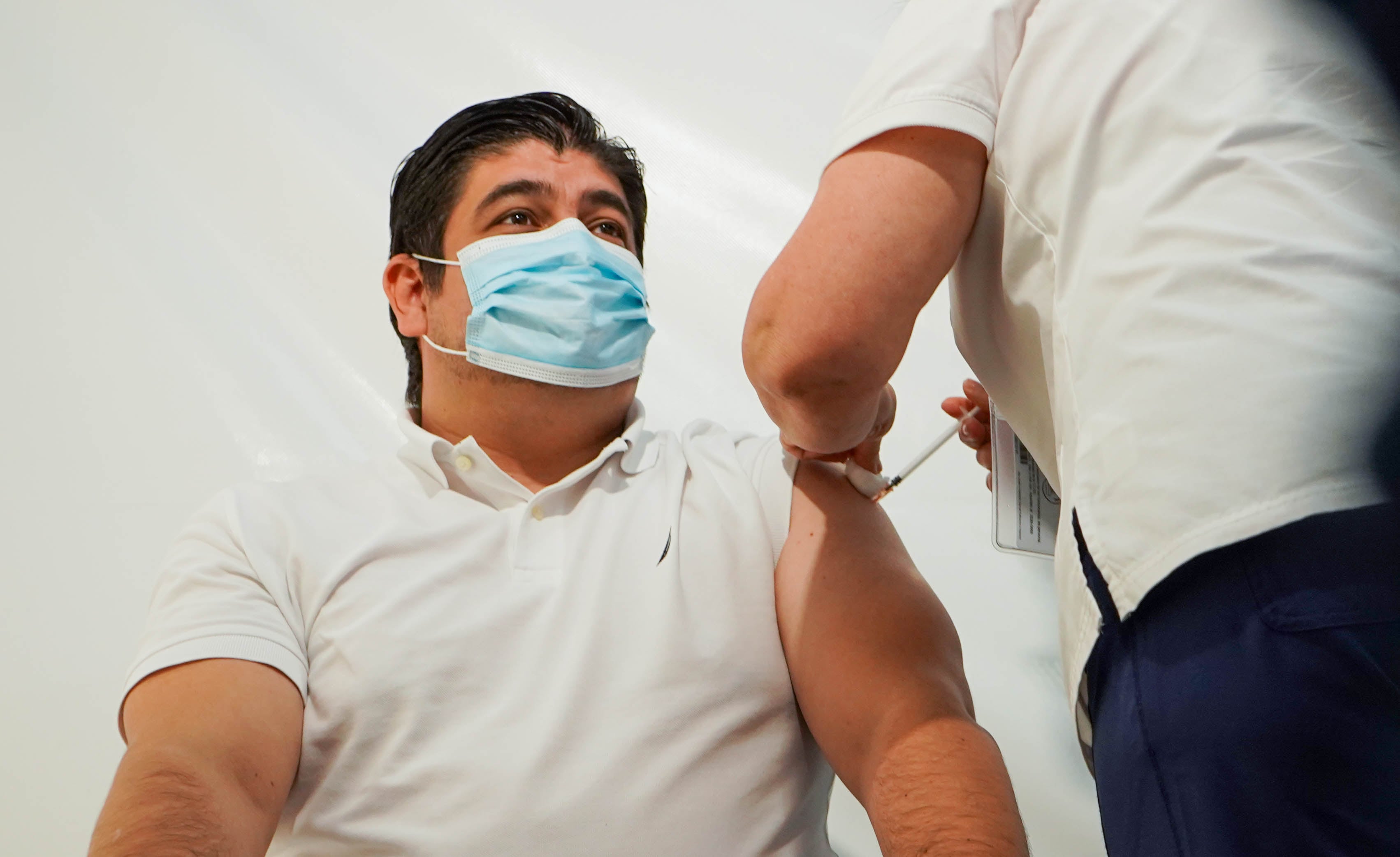Alvarado, con 42 años de edad, fue inmunizado por la enfermera del Programa Formación de Asistentes Técnicos de Atención Primaria (ATAP), Maribel Céspedes. Por su parte, Dobles, de 41 años, recibió su dosis por parte de Elizabeth Matamoros, también del ATAP.