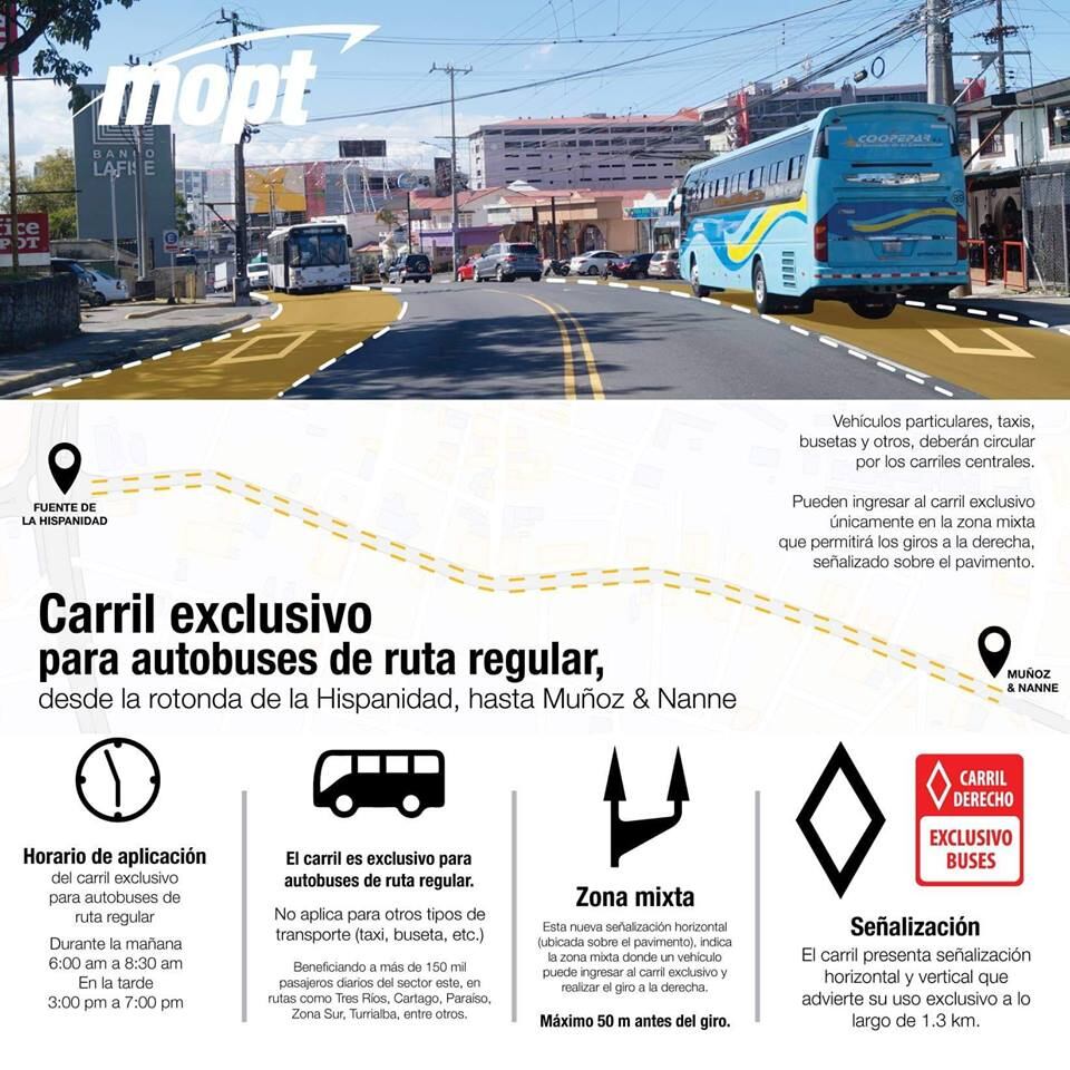 Desde las 6:00 am de este lunes 14 de enero comenzó a funcionar el nuevo carril exclusivo para autobuses, entre la fuente de la Hispanidad y el supermercado Muñoz y Nanne, en el sector de San Pedro.