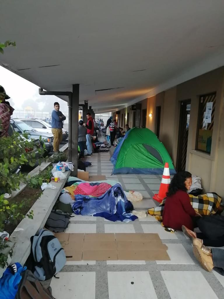 “Me vine antes por lo de la fila y logré el campo 87, es un buen lugar. Me traje un paño grande y dos jackets que los usé para dormir, dichosamente me tocó la parte con techo. Mucha gente durmió acá, como 800 personas, y muchos más siguieron llegando durante la madrugada.