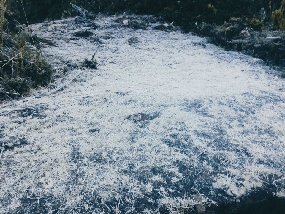 “Es la primera vez en el año que la escarcha-nieve llega a Crestones, en verdad que fue una madrugada muy fría, tanto así que la tubería del agua amaneció congelada, no pudimos ni hacer café hasta más o menos las siete de la mañana que comenzó a pegar el sol y descongeló los tubos”, nos comentó don Johnny.