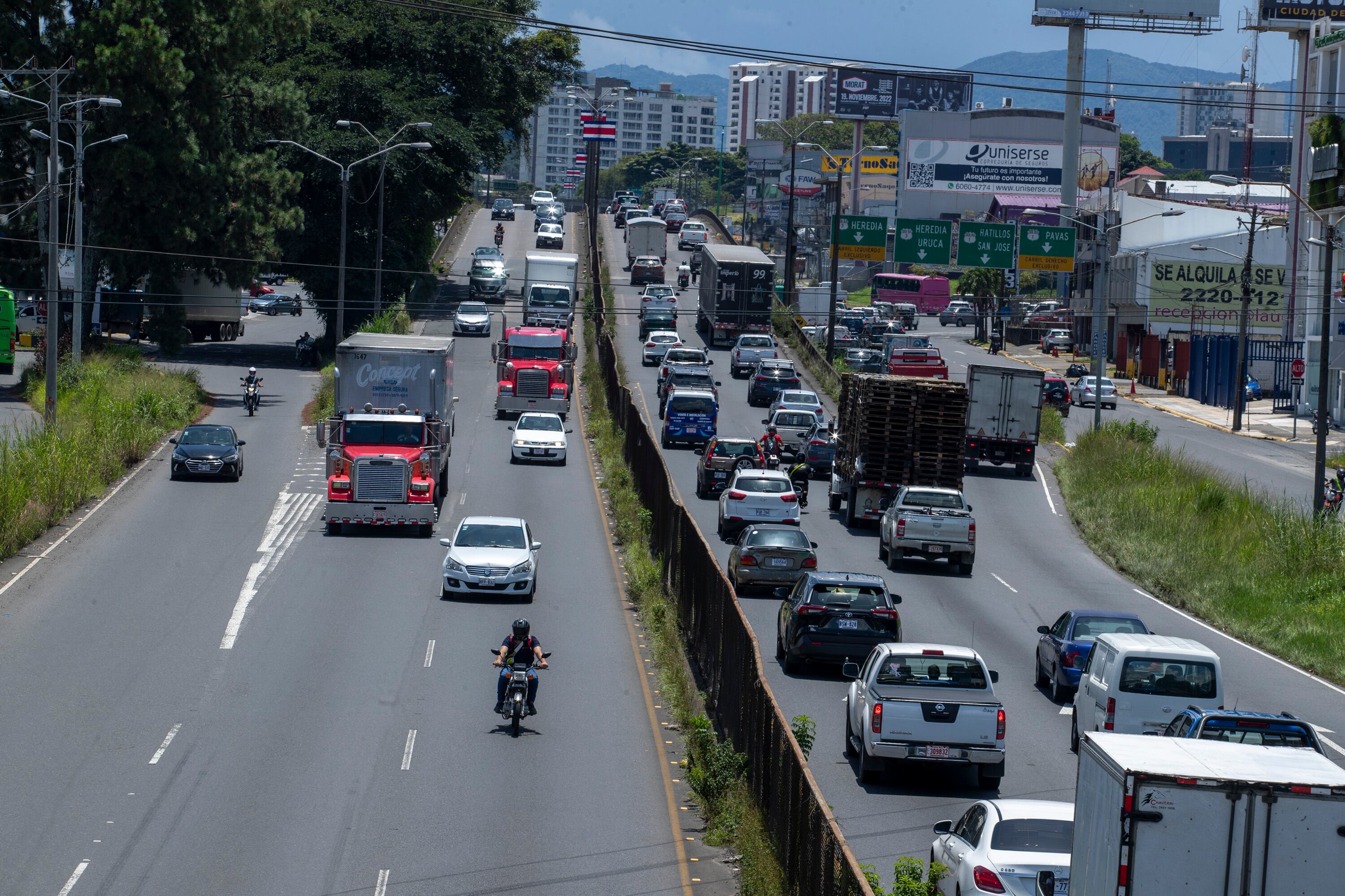 El choque ocurrió 200 metros antes de INA, en sentido San José - Alajuela. De ese lado de la vía hay un carril cerrado pero en el otro sentido de la autopista el tránsito es lentísimo por el famoso “efecto mirón”.