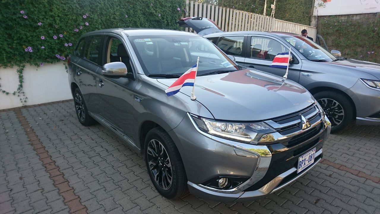 La navezota llegó a eso de las 7 a.m., es un Mitsubishi Outlander 2018 de motor 2000 y que, con tanque lleno y batería cargada, podría alcanzar hasta 1.200 kilómetros.
