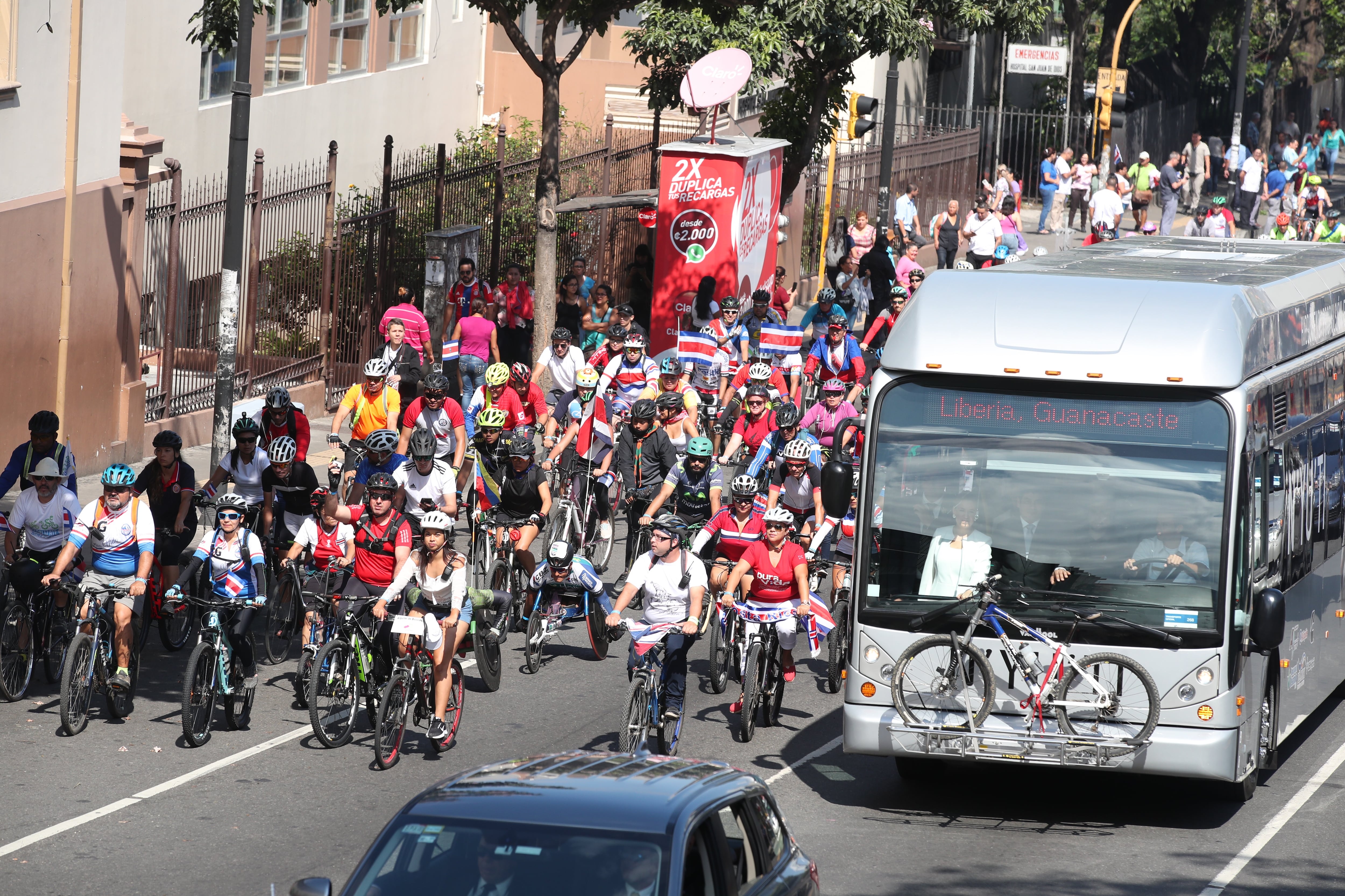 "Esto va a quedar para la historia, Costa Rica es el primer lugar donde el presidente va a ser escoltado por bicicletas", dijo todo emocionado.