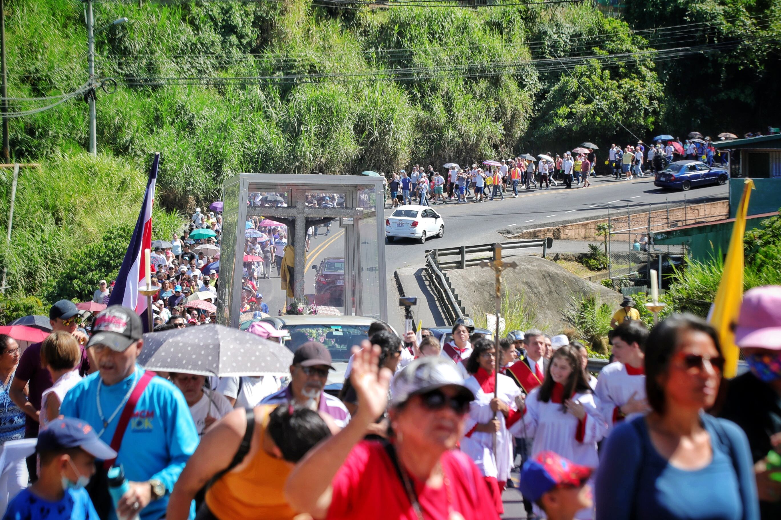A eso de las 8:15 de la mañana de este domingo 8 de enero, comenzó la peregrinación de los fieles al Santo Cristo de Esquipulas de Alajuelita, cariñosamente llamado el Negrito, desde la catedral Metropolitana en San José hasta su Santuario Nacional en Alajuelita.