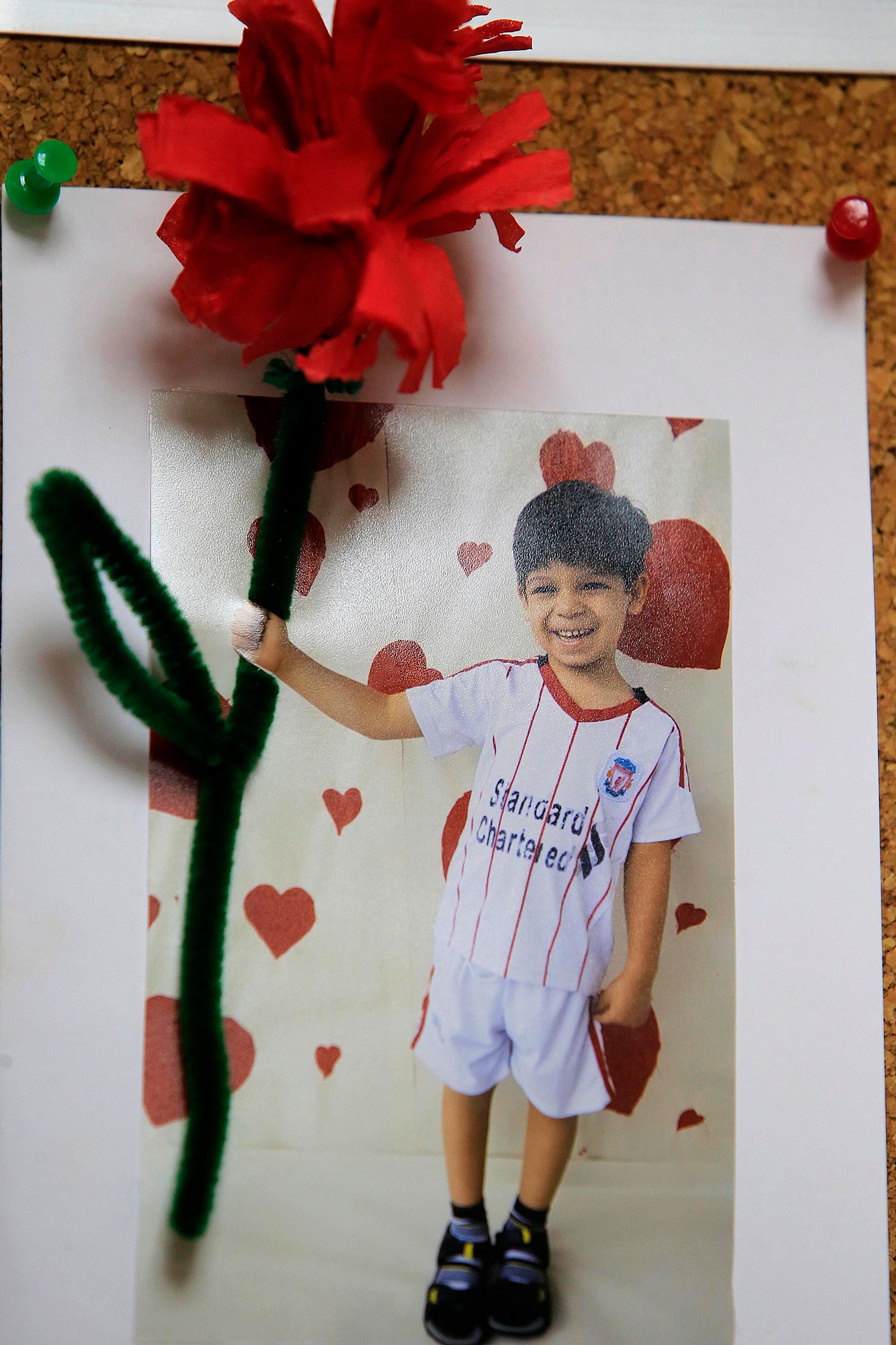 En la pared cuelgan dibujos de su hijo Gabriel, de cinco años. Uno era un huevito de pascua, otro de ambos jugando fútbol, otro de él con el uniforme de la Sele y uno de un corazón.