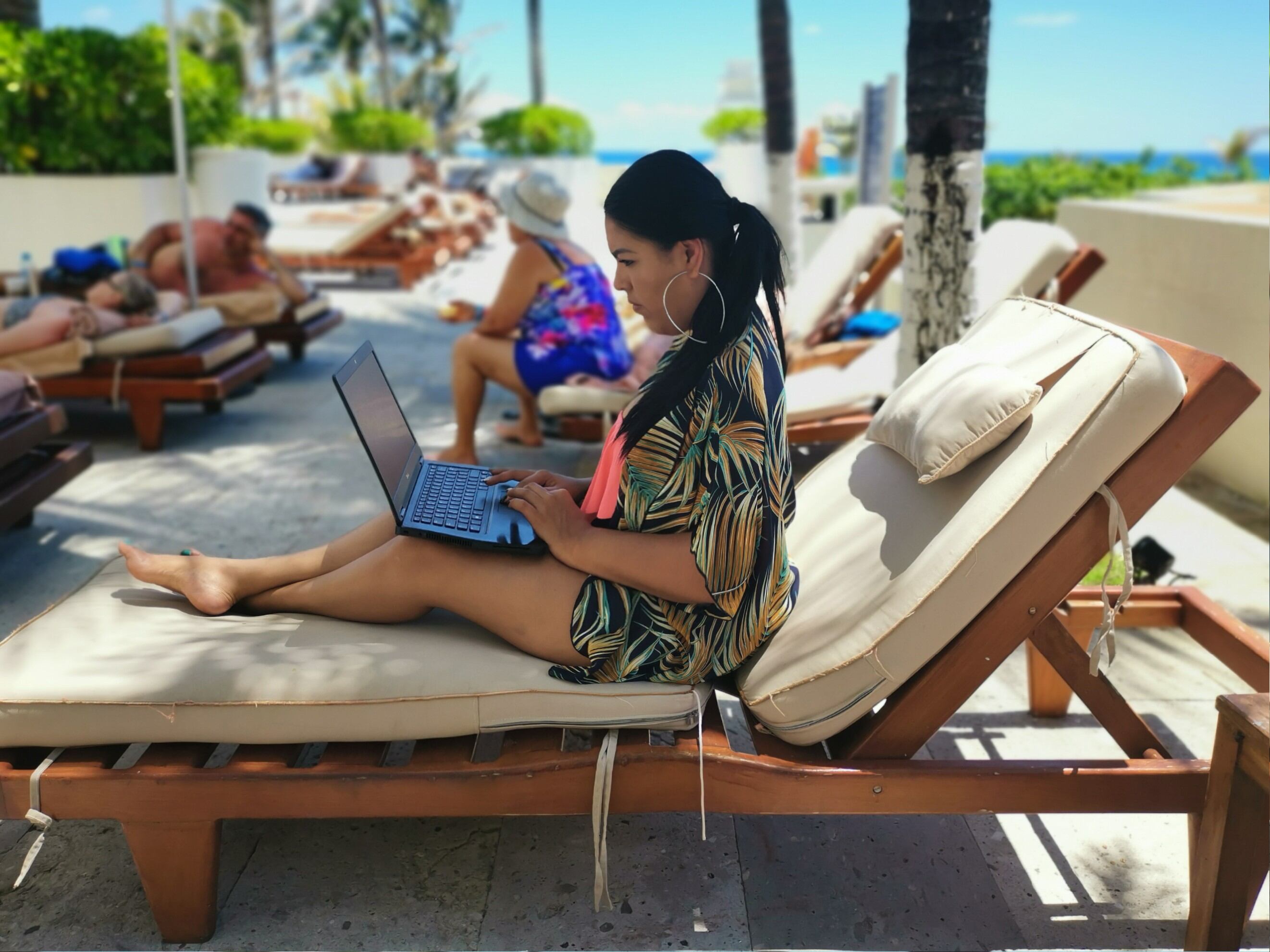 Estoy en vestido de baño, en una silla frente a la piscina, cerquita del mar, puedo comer todo lo que quiera y beber todo lo que quiera, pero lo único que deseo es estar en mi país, realmente me da miedo perder el trabajo… no quiero ni pensar que tengamos un problema con el avión otra vez, este lunes que nos regresamos.