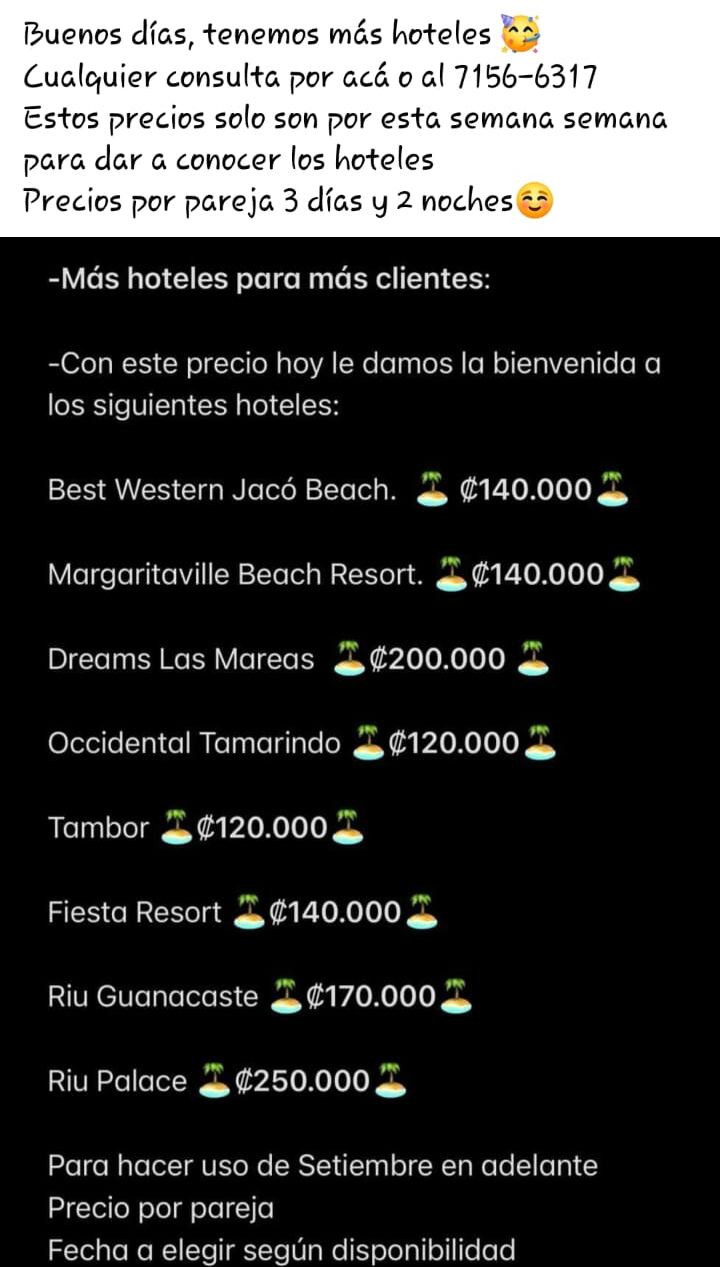 “Había personas que sí disfrutaban el paquete y aunque cuando llegaban al hotel les decían que no había reservación a su nombre, pero llamaban a Chaves para ver lo que pasaba y ella les depositaba el dinero para que ellos pagaran directamente sus habitaciones”, explicó Céspedes.