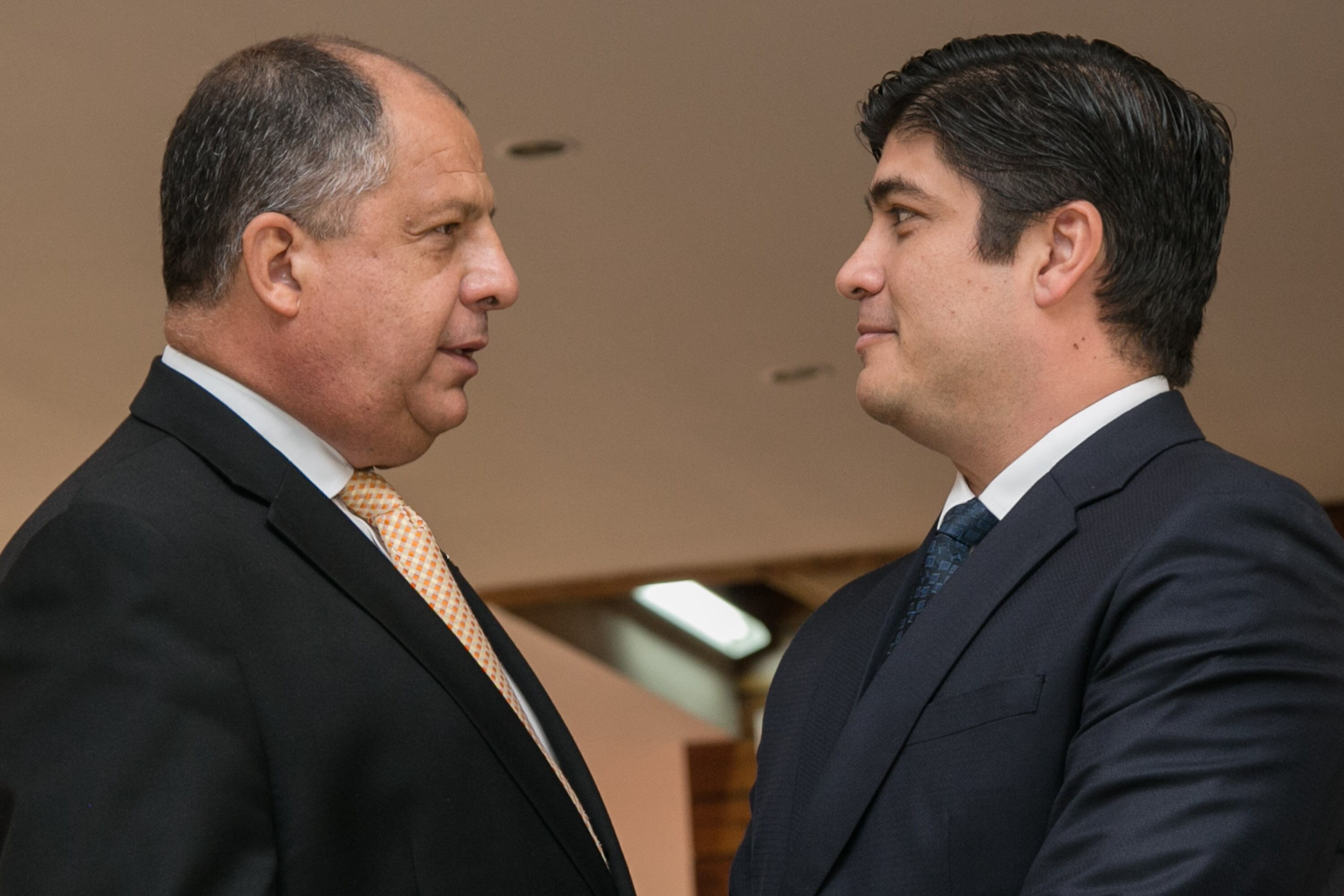 En la Plaza de la Democracia y ante los jefes de Estado de Ecuador, Aruba, Panamá, El Salvador, Guatemala, Bolivia y República Dominicana, así como representantes de 101 países más de todo el planeta, el presidente saliente, Luis Guillermo Solís Rivera, le hará entrega de la banda presidencial a Alvarado, ambos del Partido Acción Ciudadana (PAC). Solamente el Partido Liberación Nacional y el Partido Unidad Social Cristiana habían repetido consecutivamente en la silla de Zapote.