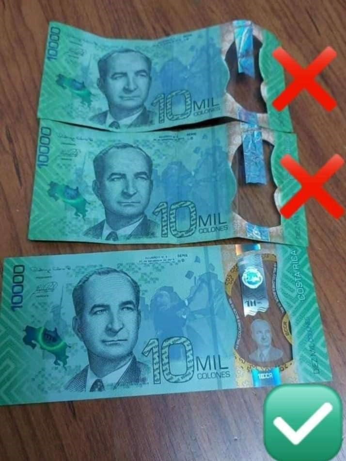 Es por eso que el BCCR nos recuerda lo que nos ha dicho desde que salieron los primeros billetes plásticos que fueron los de mil colones: toque, mire y gire.