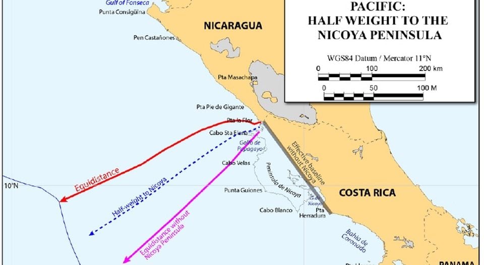 O para no irnos tan atrás en el tiempo, ¿cuánto cambiaría Costa Rica si nos basamos en el mapa que Nicaragua presentó ante la Corte de La Haya, en el que con todo el descaro del mundo eliminaron la península de Nicoya?