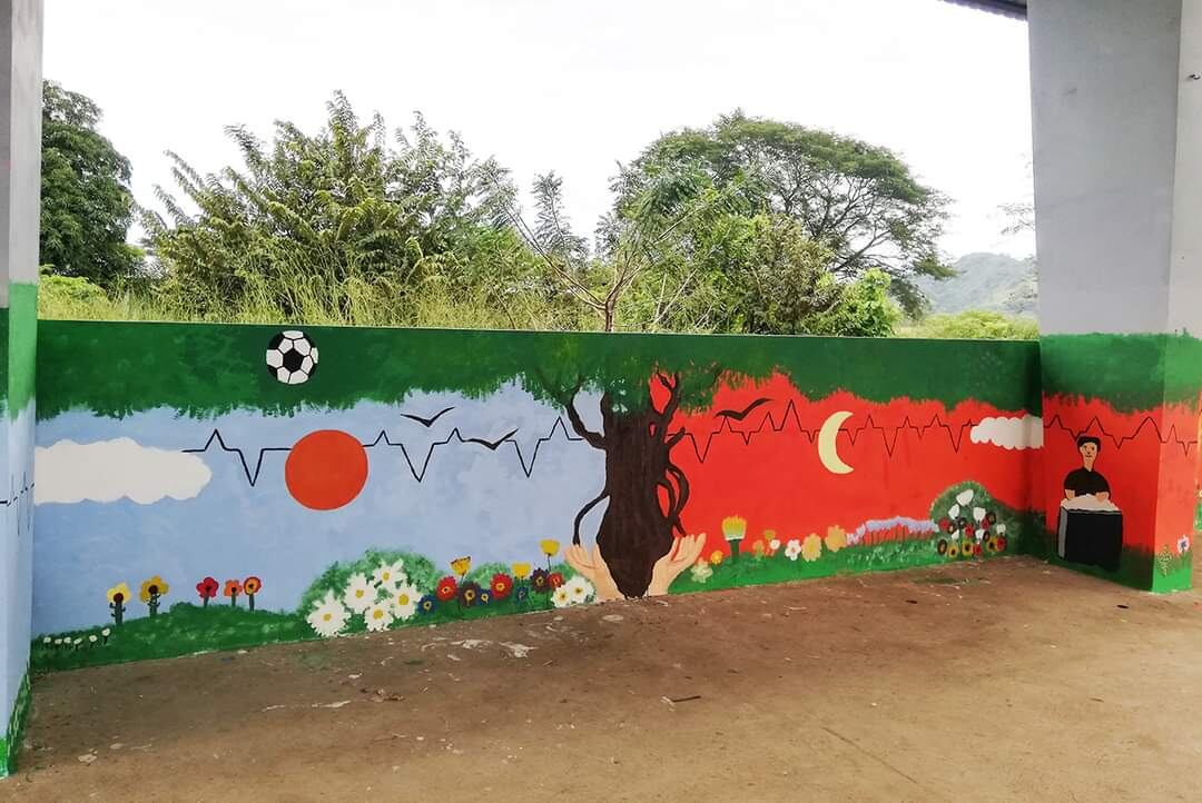 En el 2022 lograron elaborar cinco murales, tres en una escuela de Santa Cruz y dos en el Colegio Técnico de la comunidad donde se trasladaron y trabajaron con ellos.