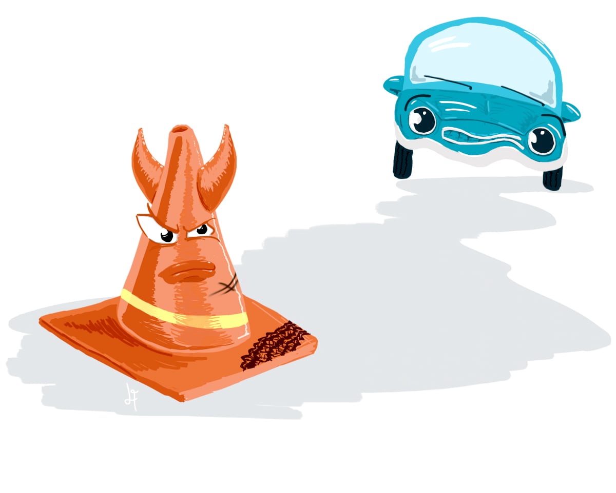 Golpear un cono es la causa número uno, según el Ministerio de Obras Públicas y Transportes (MOPT), por la que la gente pierde la prueba práctica de manejo, por eso, nos interesamos en hablar con un cono para que nos contara cómo la vive cada vez que alguien hace la prueba (en moto o carro), sabiendo que es casi un hecho que lo van a arrugar.
