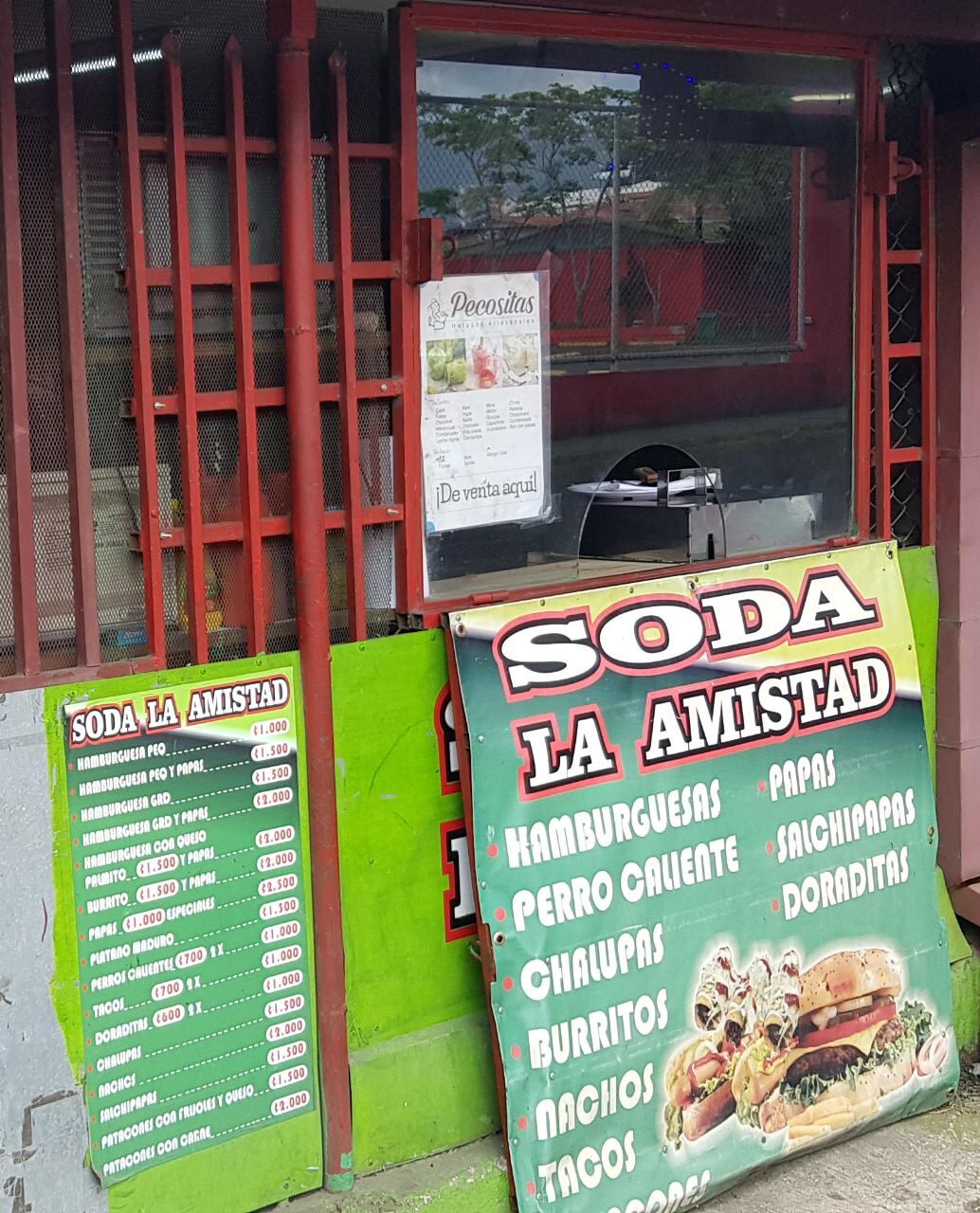 La soda La Amistad se caracteriza por vender rico y barato. La hamburguesa pequeña vale un rojito, al igual que dos perros calientes o dos tacos. Los nachos, la hamburguesa grande con papas y los patacones con carne cuestan dos rojitos.