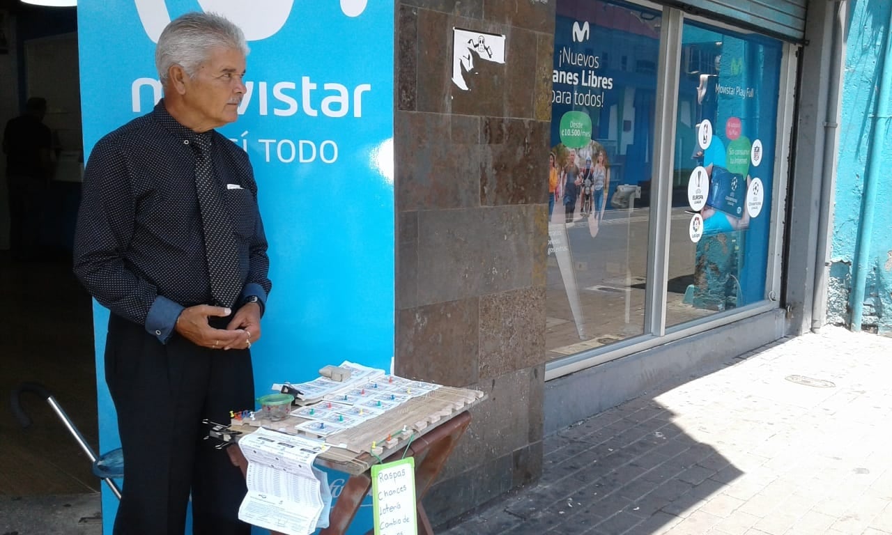 También observamos que don Gerardo no se va solo en la pinta, su trato es muy educado, vende a precio y cambia fracciones premiadas sin poner peros.