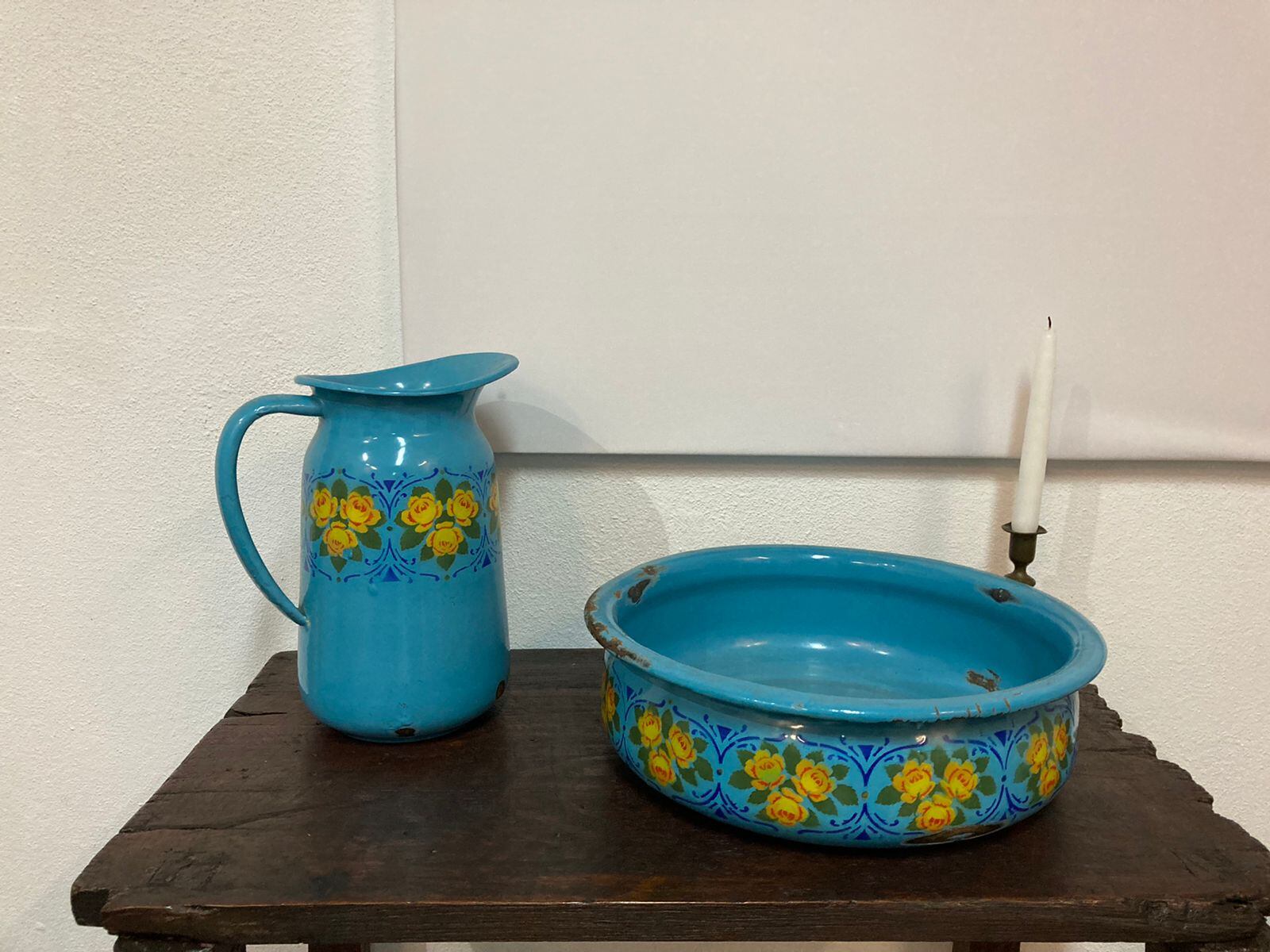 Uno de los que destaca por su colorido es el aguamanil (jarra con palangana para lavarse las manos) celeste que encontramos en la sala de exhibición, pero este no se encontraba en todas las casas, estaba reservado para un segmento de aquella sociedad y los había de porcelana, de lata enlozada y de loza.