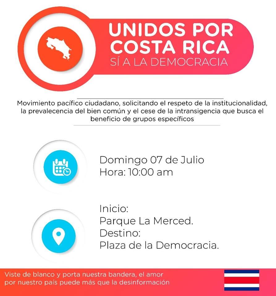 Este domingo se llevará a cabo una marcha que tiene como lema “Unidos por Costa Rica, sí a la democracia”.