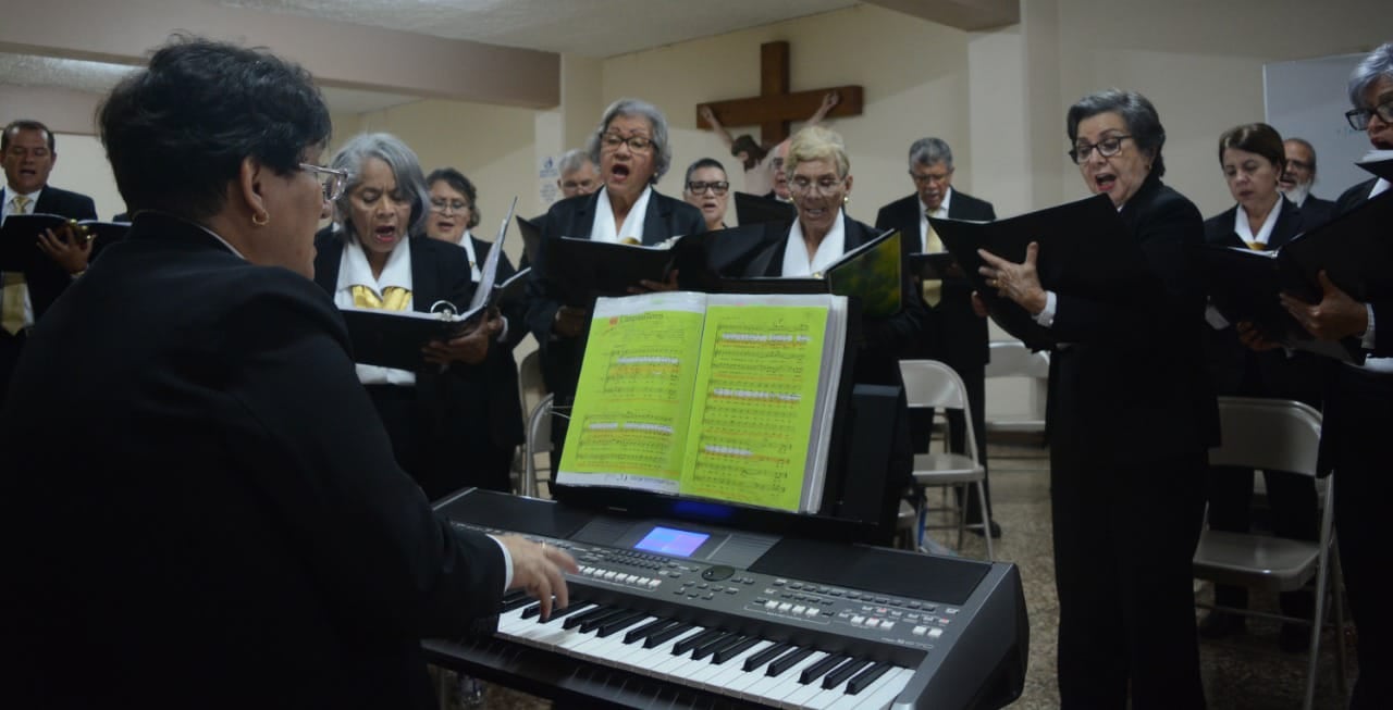 Los ensayos son en un salón que les presta la iglesia de Moravia, los viernes de 2 p.m. a 4 p.m. y se quedan tertuliando con café media hora más.