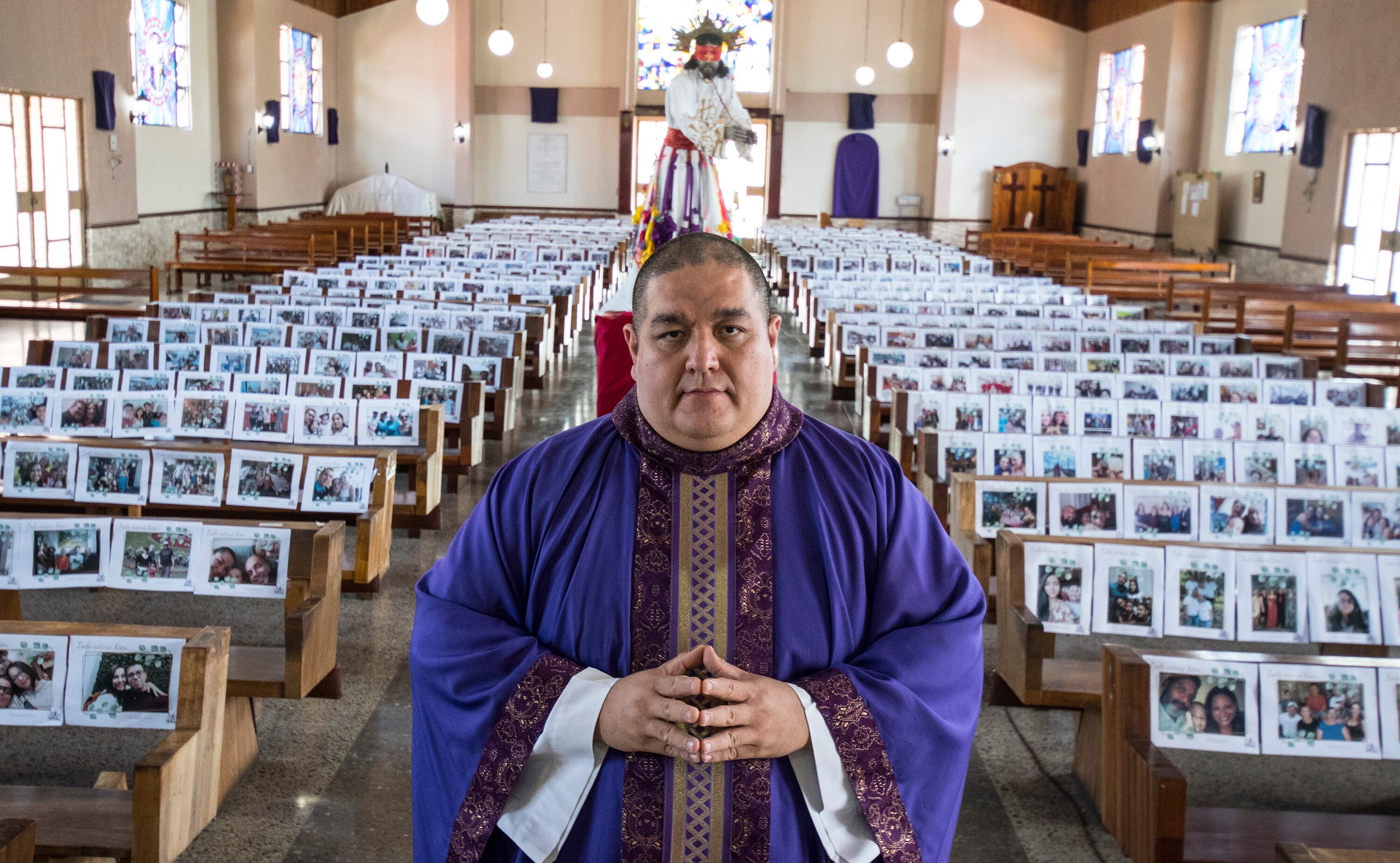 Este padre dio de qué hablar en el país y fuera de él, por la linda iniciativa de poner en las bancas de la iglesia, las fotografías de los feligreses que usualmente iban a misa y que ahora no pueden porque el coronavirus tiene los templos cerrados.