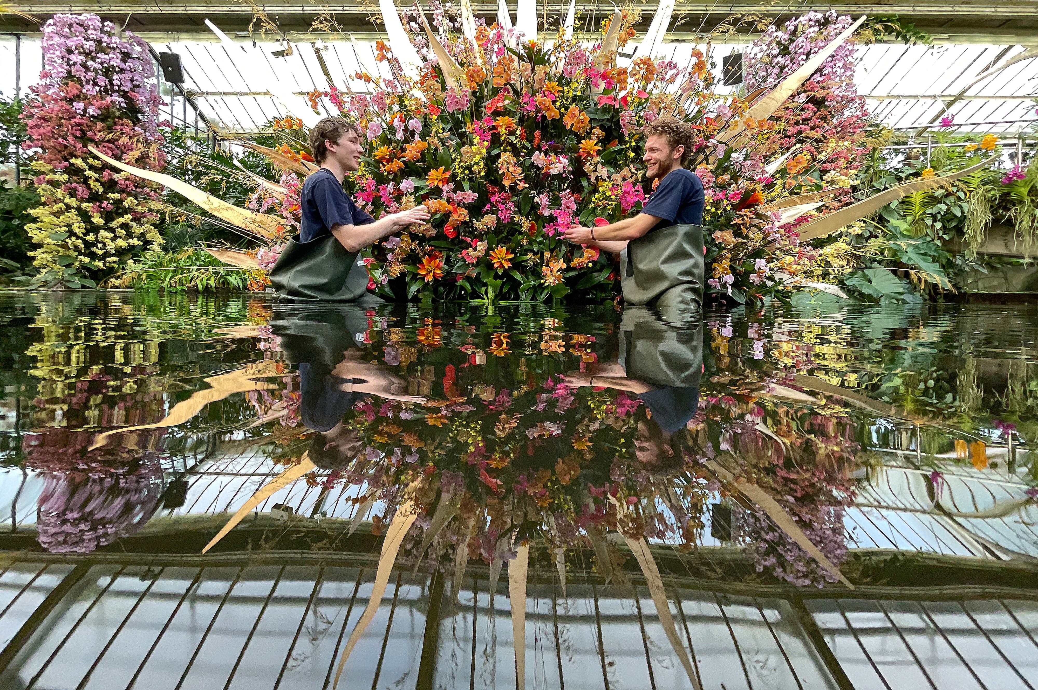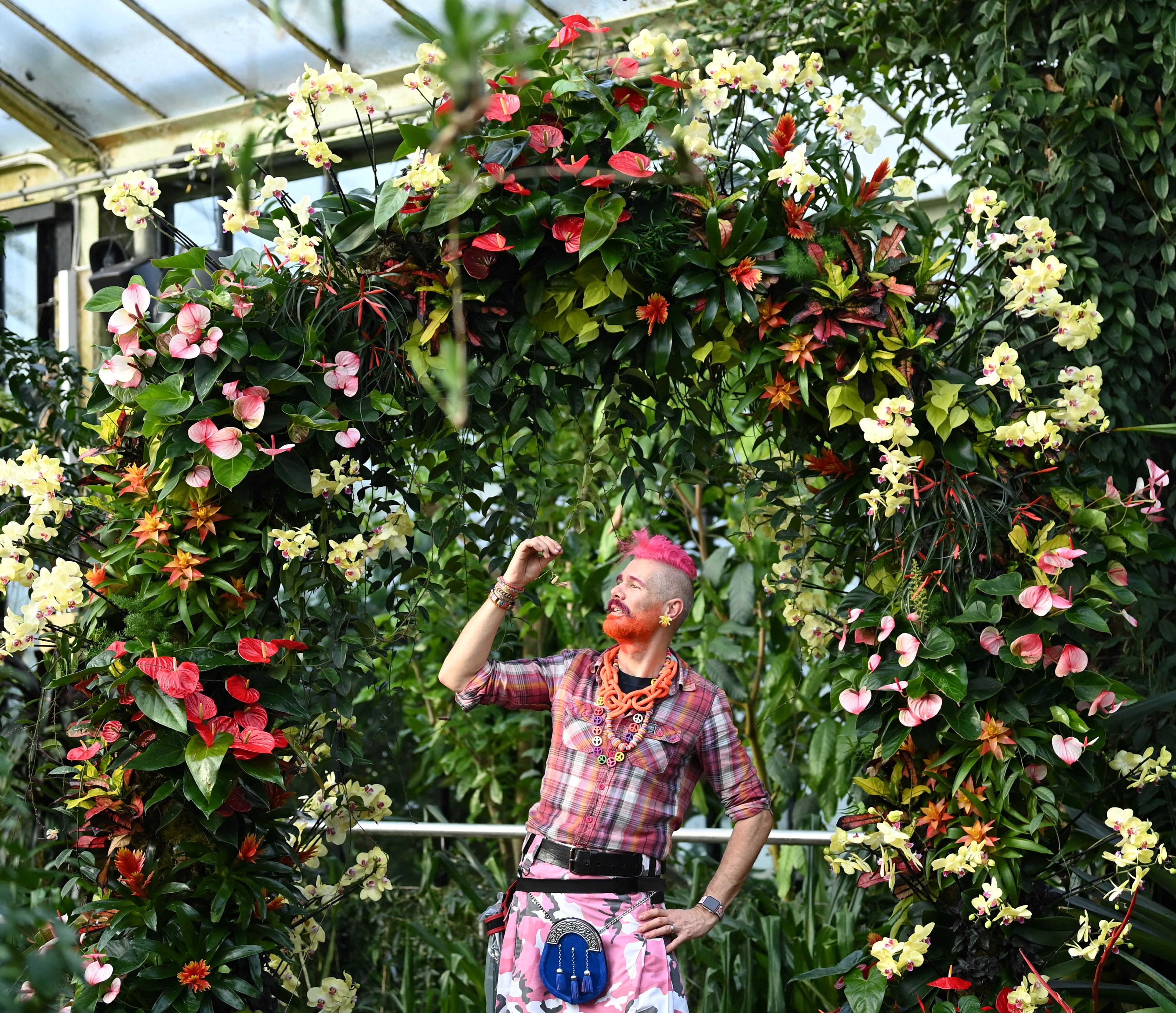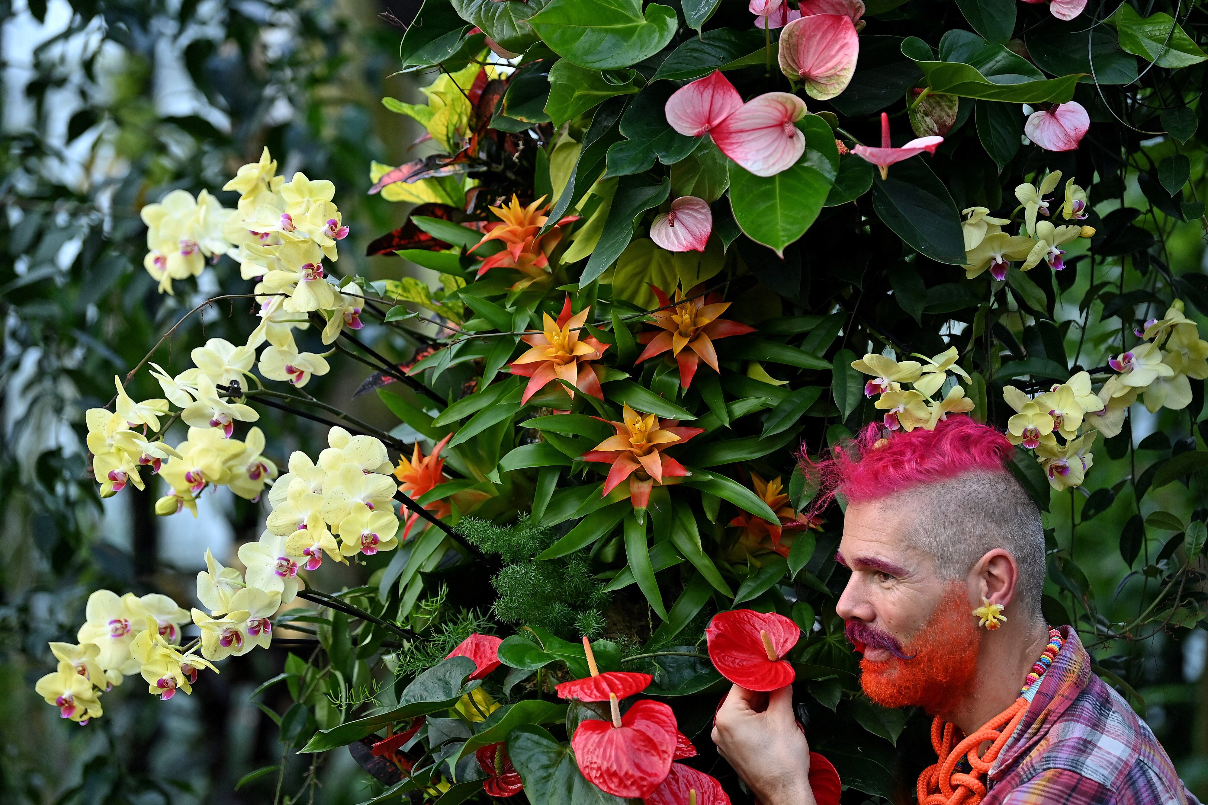 Este holandés, que ha teñido su barba y sus cabellos de rosa y naranja como las orquídeas, explica que esta exposición es el resultado de una preparación de dos años, después de que la muestra fuera anulada en 2021 debido a la pandemia de covid-19.