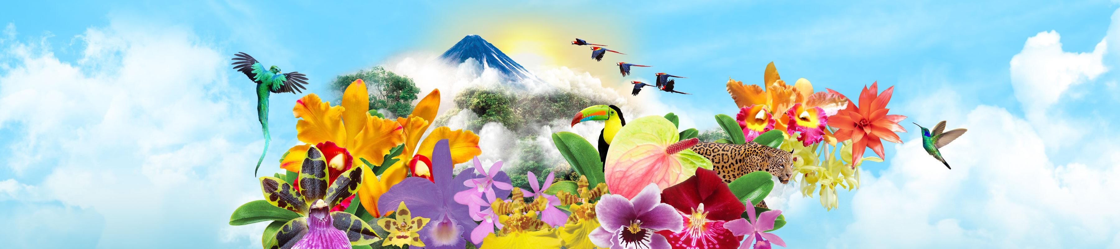 Entre las plantas exhibidas se encuentra, por supuesto, flor nacional costarricense, la Guarianthe skinneri, actualmente una especie amenazada. La llamada guaria morada crece en las ramas y troncos de los árboles en bosques húmedos o en acantilados de granito a cierta altitud.