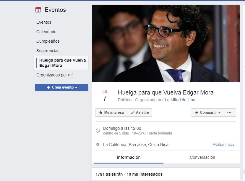 La iniciativa se llama ‘Huelga para que vuelva Edgar Mora’. Actualmente hay diez mil interesados en asistir al evento y ya 1.700 personas confirmaron asistencia.