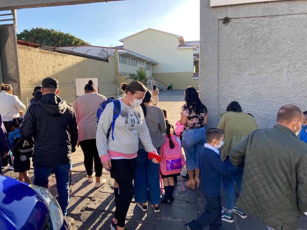 Luego nos dirigimos a la escuela Jesús Jiménez, ubicada al costado noreste del colegio San Luis Gonzaga, donde se observó mayor movimiento y a los padres de familia haciendo fila junto a sus hijos de primer grado para iniciar su aventura escolar este 2022.