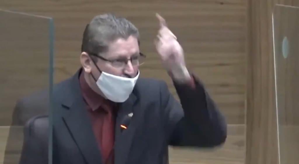 Rodríguez Steller, como es su costumbre, le levantó la voz al ministro y por esa exaltación la mascarilla que andaba puesta, y que le quedaba floja, le empezó a bailar dejando descubierta la nariz, dando un claro ejemplo de cómo no se debe usar el tapabocas.