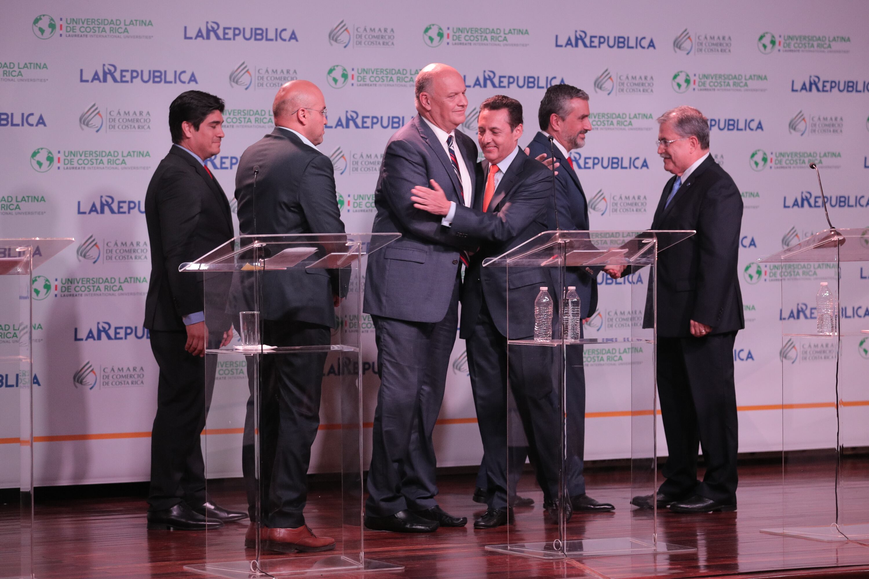 A la cita llegaron los candidatos Carlos Alvarado, del PAC; Antonio Álvarez, del PLN; Edgardo Araya, del FA; Juan Diego Castro, del PIN; Otto Guevara, del ML y Rodolfo Piza del PUSC.