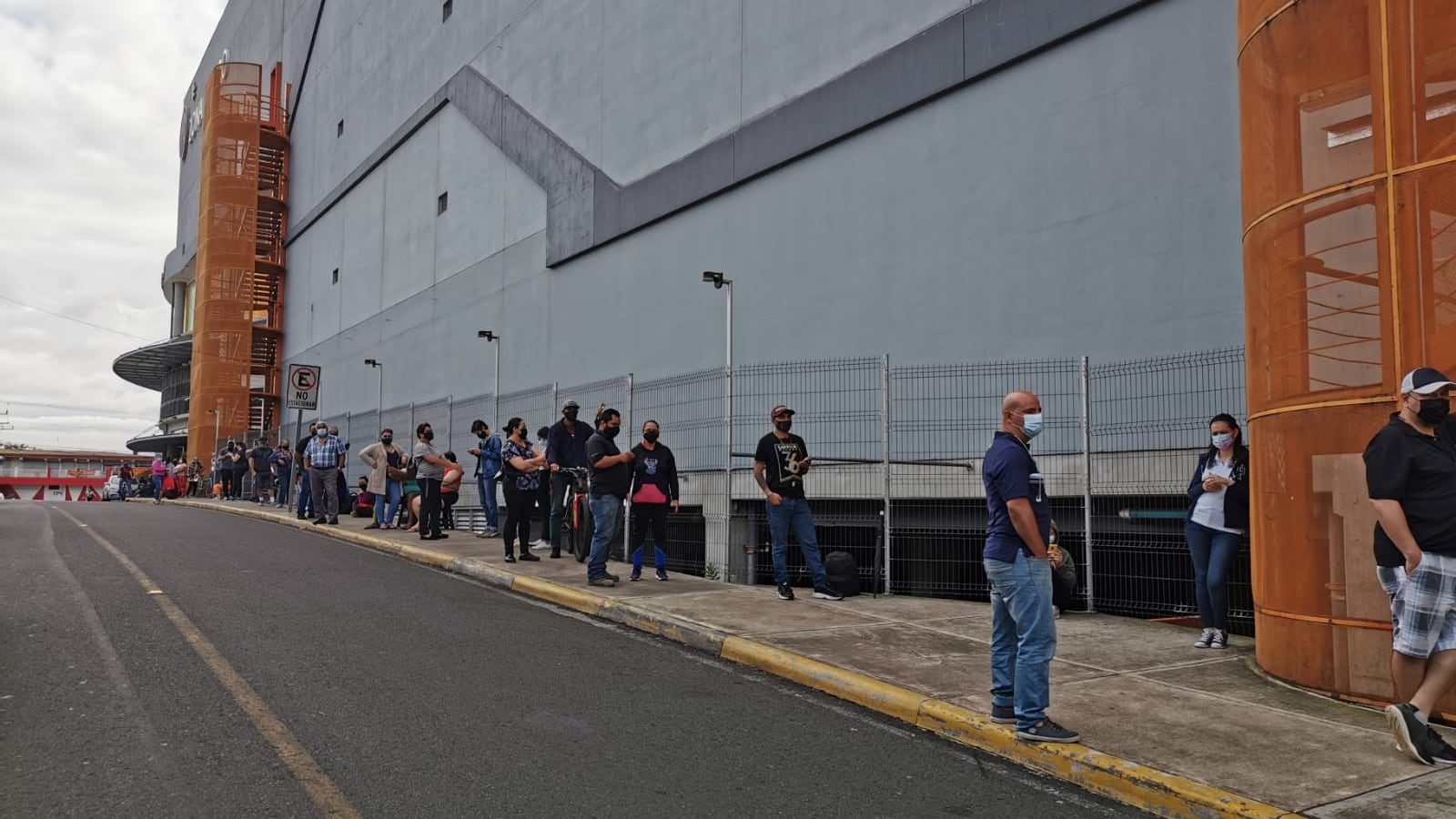 Guillermo Madrigal llegó a las 2:30 de la madrugada de este lunes a las afueras del mall Zona Centro, en San Rafael Abajo de Desamparados, para asegurar un campo para su esposa, Adilia Rivera, en la fila de vacunación contra el covid-19.