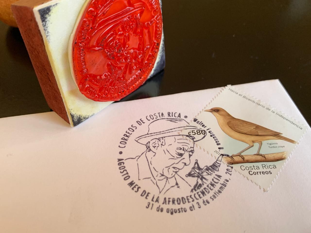 Como parte de las celebraciones, Correos de Costa Rica presentó este lunes un matasellos conmemorativo ilustrado con el rostro del reconocido artista Wálter Ferguson, el cual fue diseñado por Cristian Ramírez.
