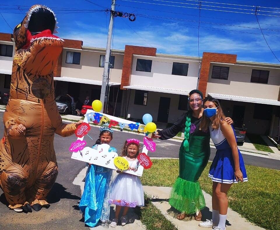 “Una mamá se vistió de dinosaurio, otra de porrista y otra de sirena y se pusieron cubrebocas para ir a repartir las bolsitas a cada casa. Los chicos también se vistieron con trajes de fantasía para hacer que el día fuera más colorido”, narró Johana.
