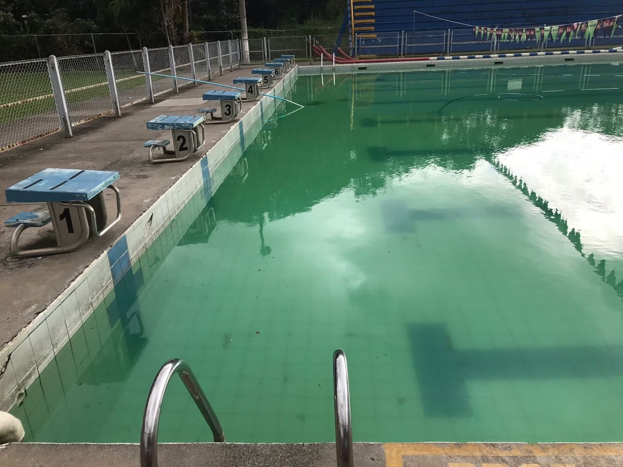 Es increíble que uno haga el esfuerzo de levantarse tempranito para ir a nadar a la Villa Olímpica de Desamparados y darse cuenta que la piscina principal está fuera de uso, porque está tremendamente sucia, es más, hasta se ve verde y da asco.