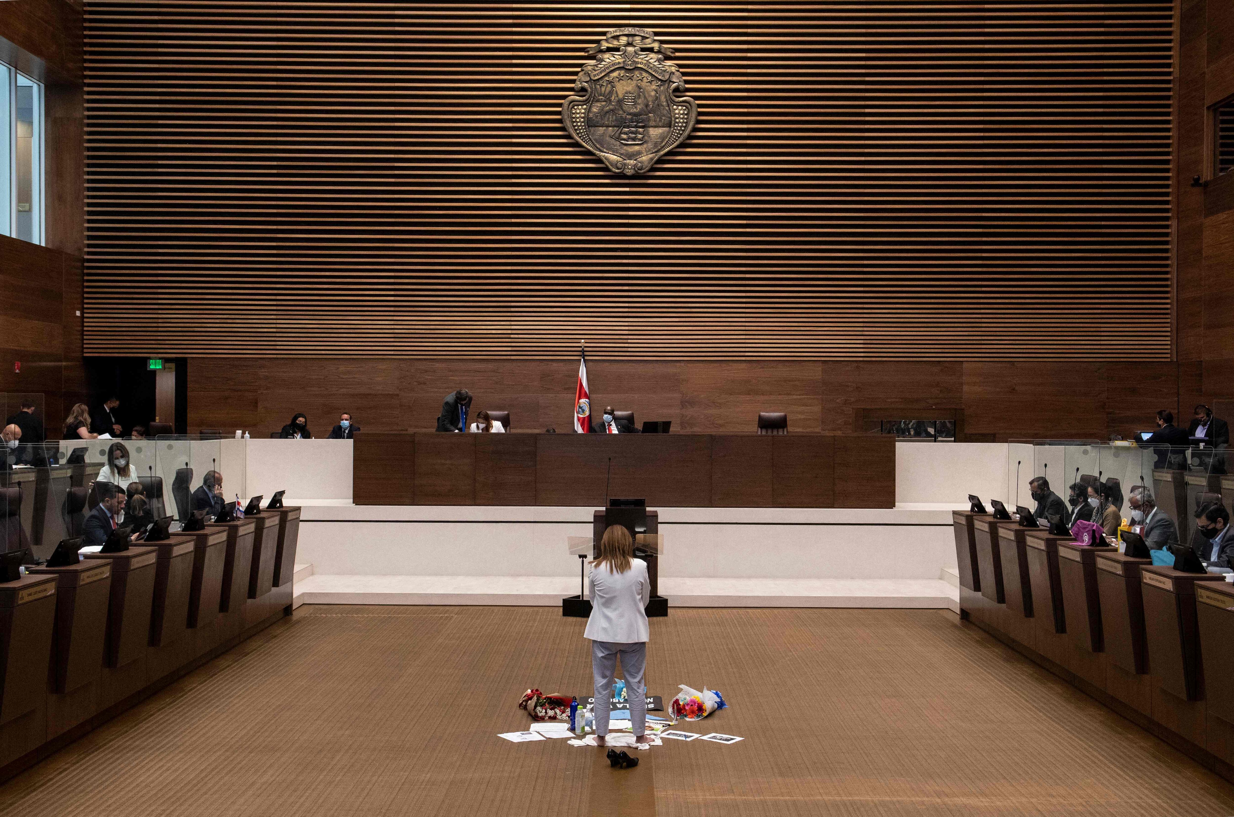 La diputada Nuria Céspedes cumplió su cuarto día de plantón en el centro de la sala plenaria de la Asamblea Legislativa, en protesta ante una propuesta legal que plantea el aborto libre en el país.