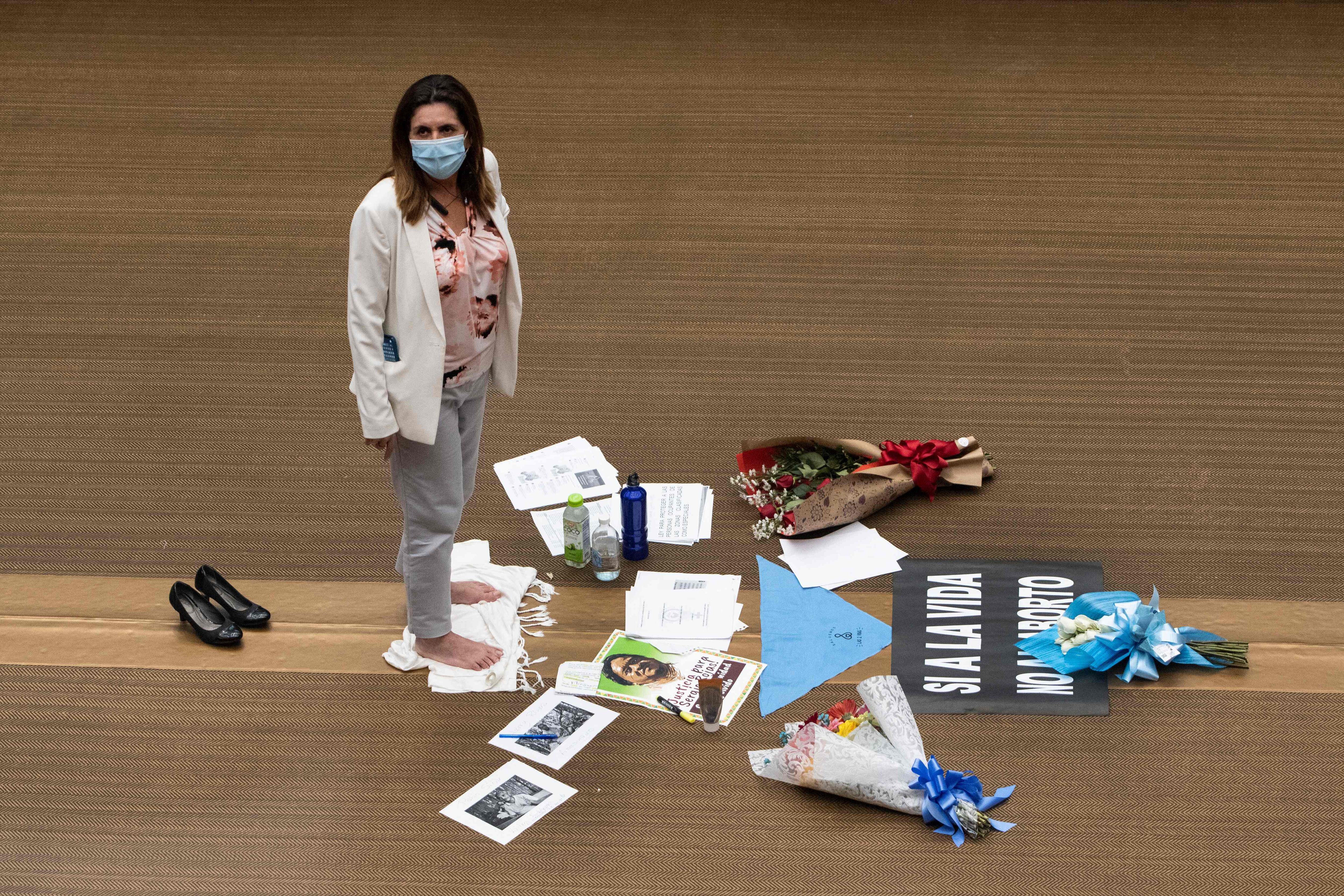 "Ya no estoy en mi curul, me vine al centro del plenario (de 57 legisladores). No se puede entender como varias feministas quieren meter el aborto. Los no nacidos nos van a representar más adelante. Ellos ahora no tienen voz pero esta diputada levanta la voz por ellos", agregó, vía telefónica.
