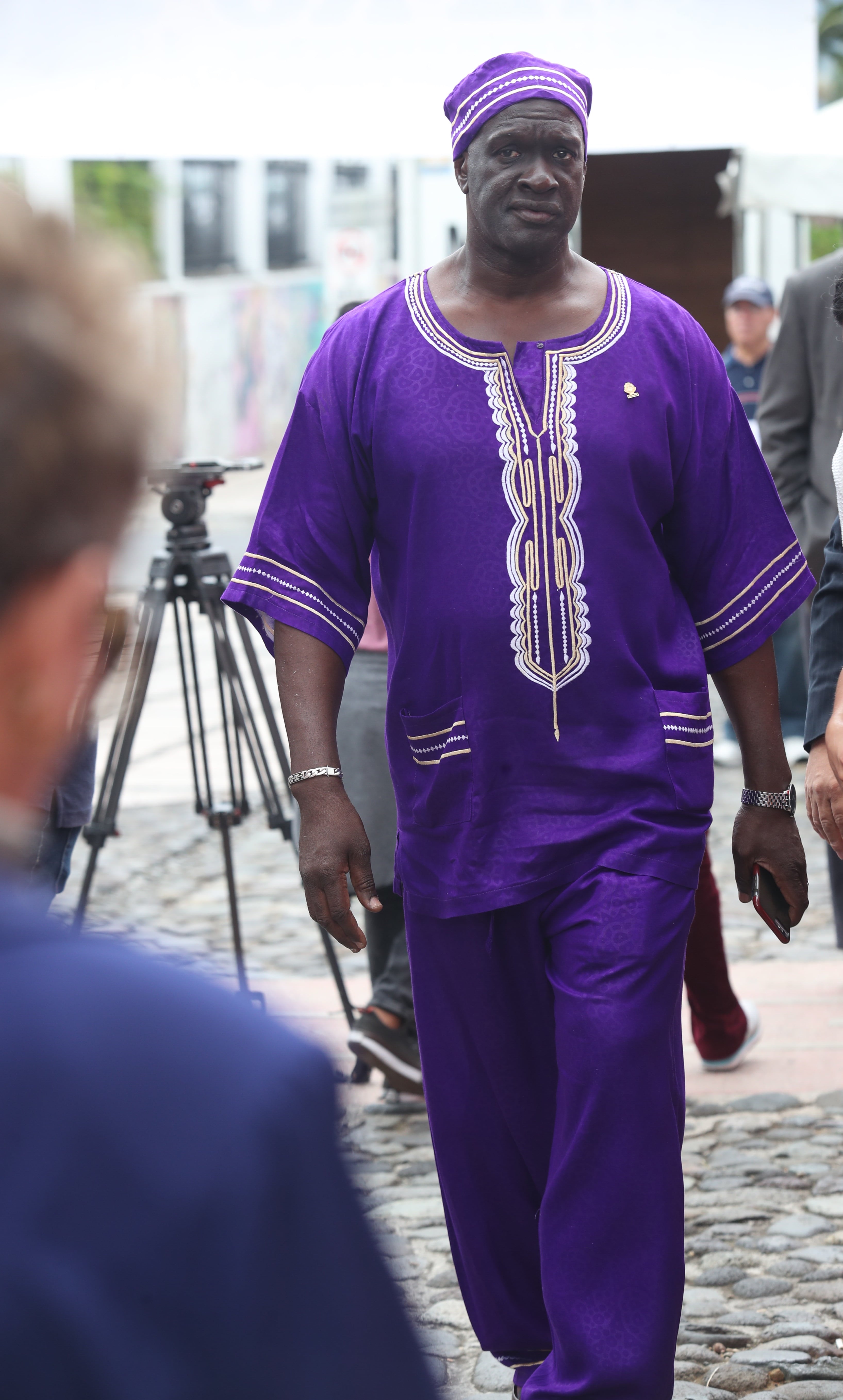 El hombre rompió el protocolo y llegó al congreso vestido con un traje afrocaribeño de color morado, ya que este viernes 31 de agosto se festeja el Día del Negro y la Cultura Afrocostarricense.