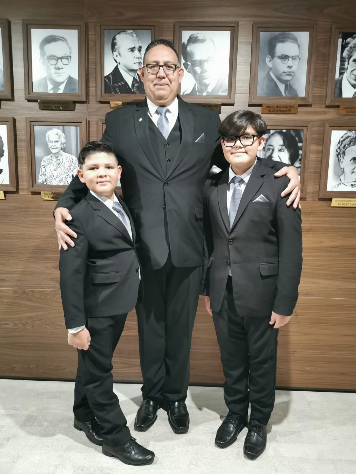 Impecables: Leslye Bojorges fue a la ceremonia del 1° de mayo acompañado de su amada esposa y sus dos hijos. Los pequeños lucieron un traje exactamente igual al del papá, por lo que todos se veían muy elegantes.