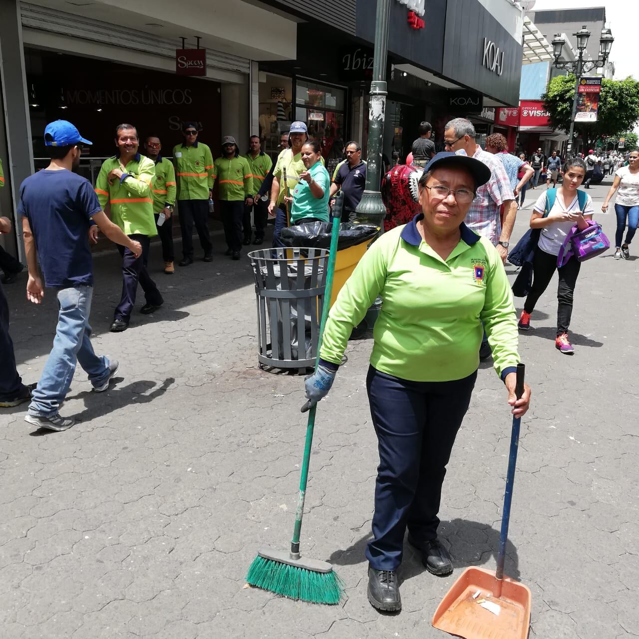 “Prefiero mil veces estar aquí trabajando, dándole duro a la barrida porque no me gusta ver San José sucio y si uno deja un día de venir se acumula mucha basura”, nos comentó la empleada de la muni de San José.