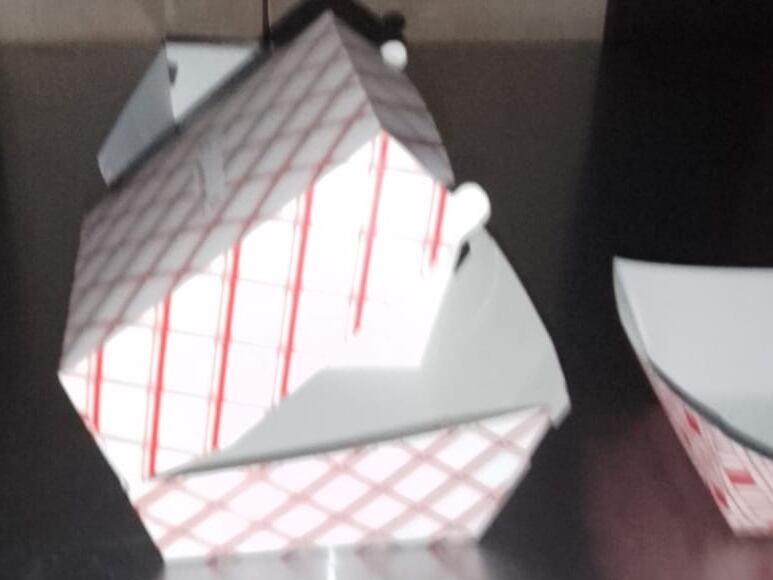 Ella describió esas plásticas como del material de las tazas del cantonés que venden los chinos, pero con la tapa pegada. Además detectó que no tienen “pancita” en la tapa y teme que al cubrir una hamburguesa la aplastará.