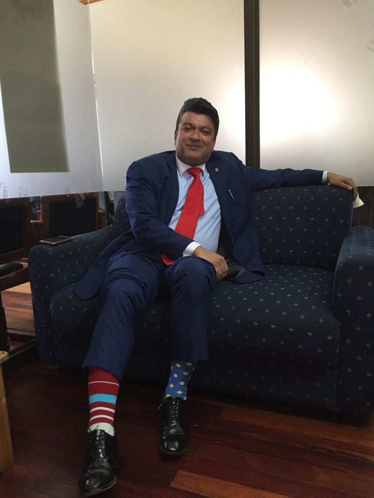 Uno de los pares de medias más emotivos de todos fue el del diputado Ronny Monge, quien llegó a la Asamblea Legislativa luciendo sus dos calcetines distintos en nombre de su tía Liza, una señora de 60 años, con síndrome de Down.