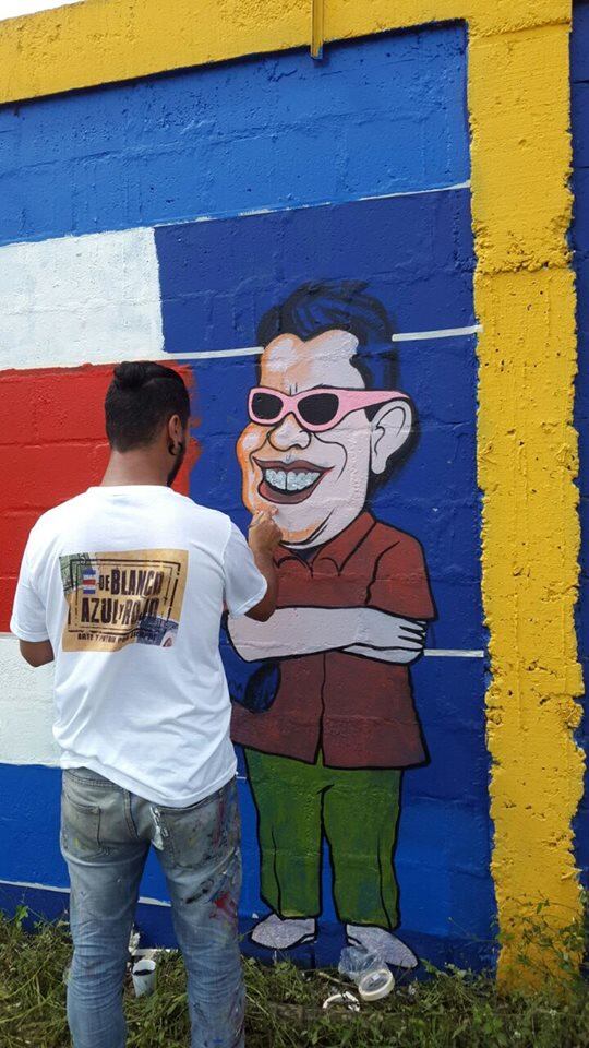 "Aquí me traje a Juanita y a Juan Gha para que me ayuden. La idea es que la gente sienta patriotismo, se tome la foto en el mural y comparta en las redes sociales", comentó el dueño del güiro, con rodillo en mano.