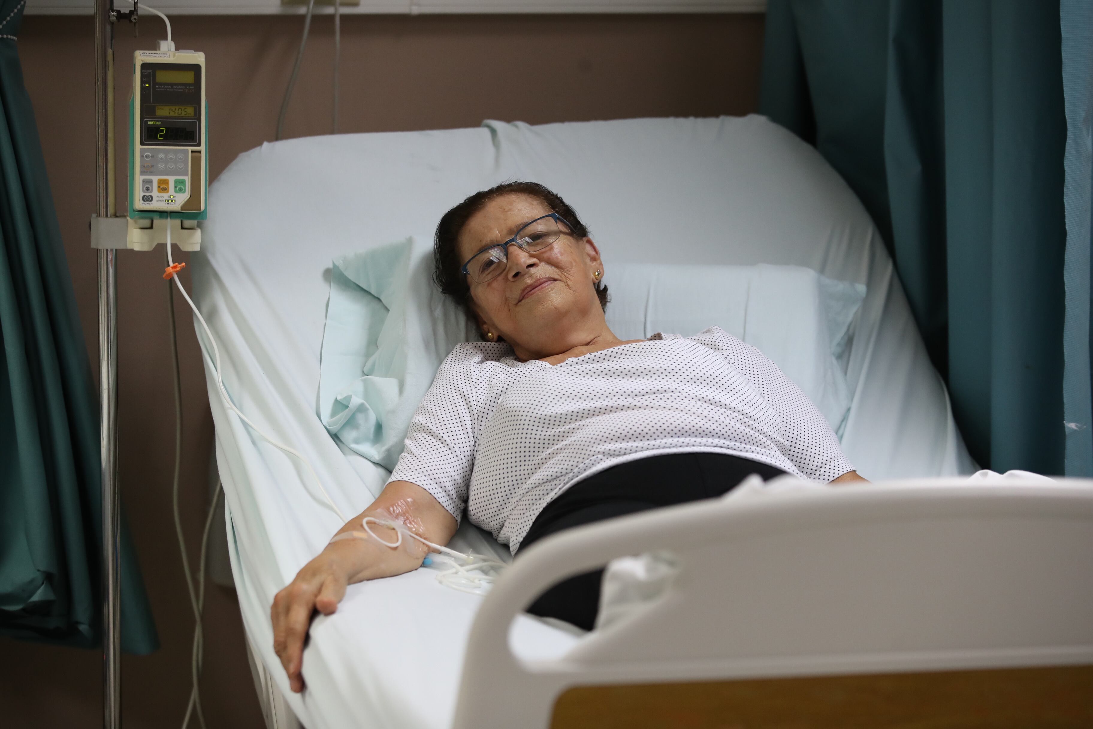 Desde hace cinco años doña Adela Santonastasio entra y sale constantemente del Hospital México por una guerra que tiene contra el cáncer de tiroides.