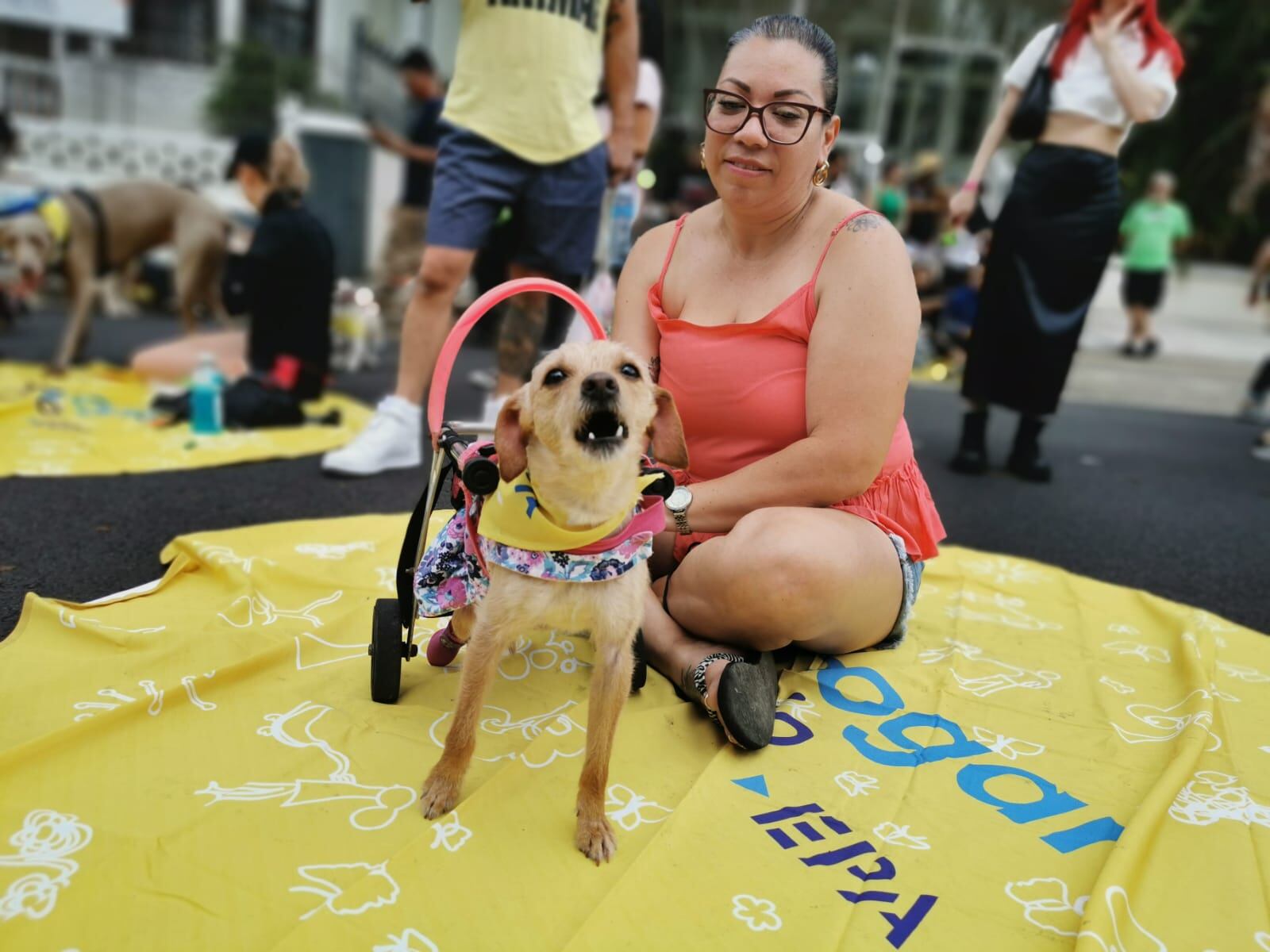 En la actividad participaron todo tipo de perritos, hasta los que tenían alguna discapacidad como Lía, que tiene que usar una sillita de ruedas porque sus patitas traseras perdieron la fuerza para caminar.