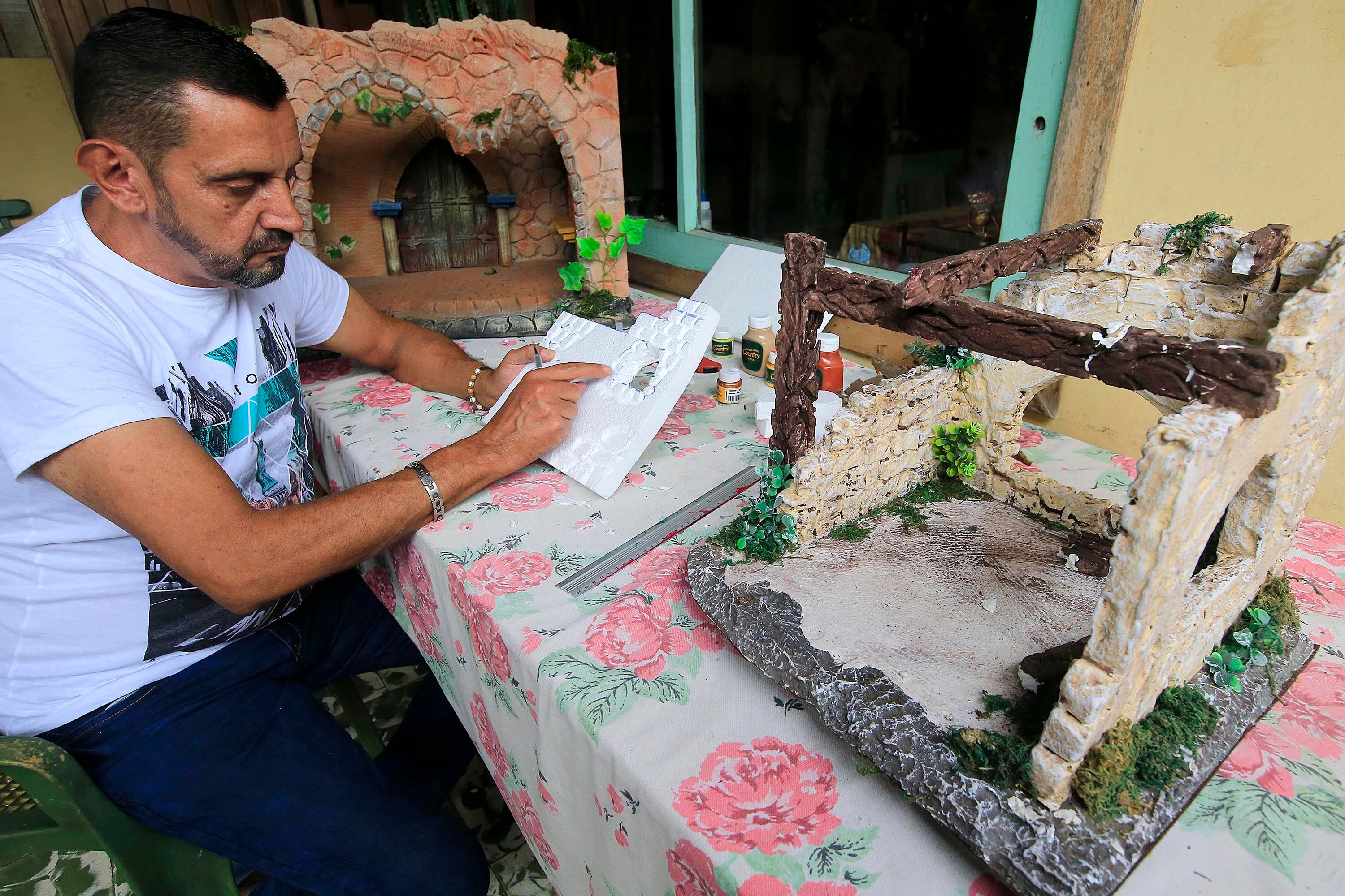 Este año ya lleva 14 portales hechos y aún le falta la época más brava. Para que se haga una idea, en el 2016 ayudó a 68 familias con este tradicional elemento navideño.